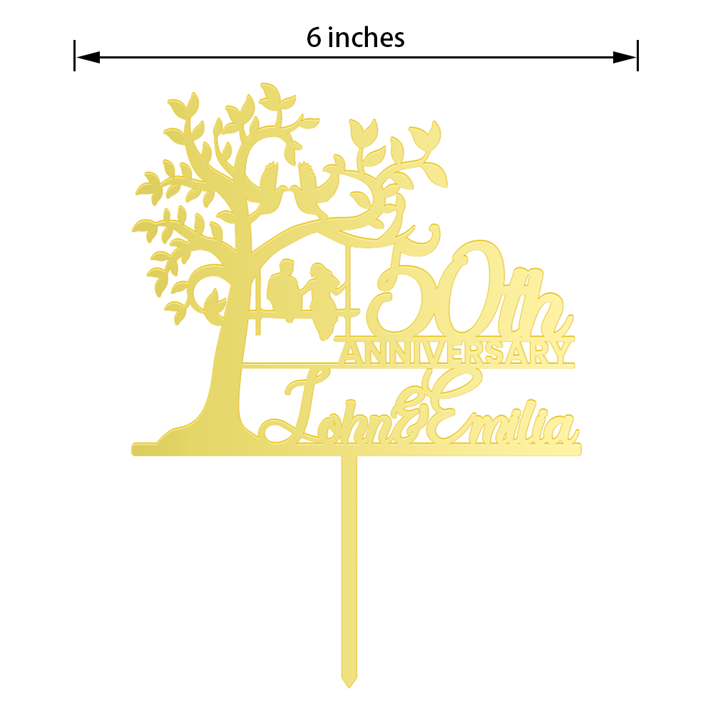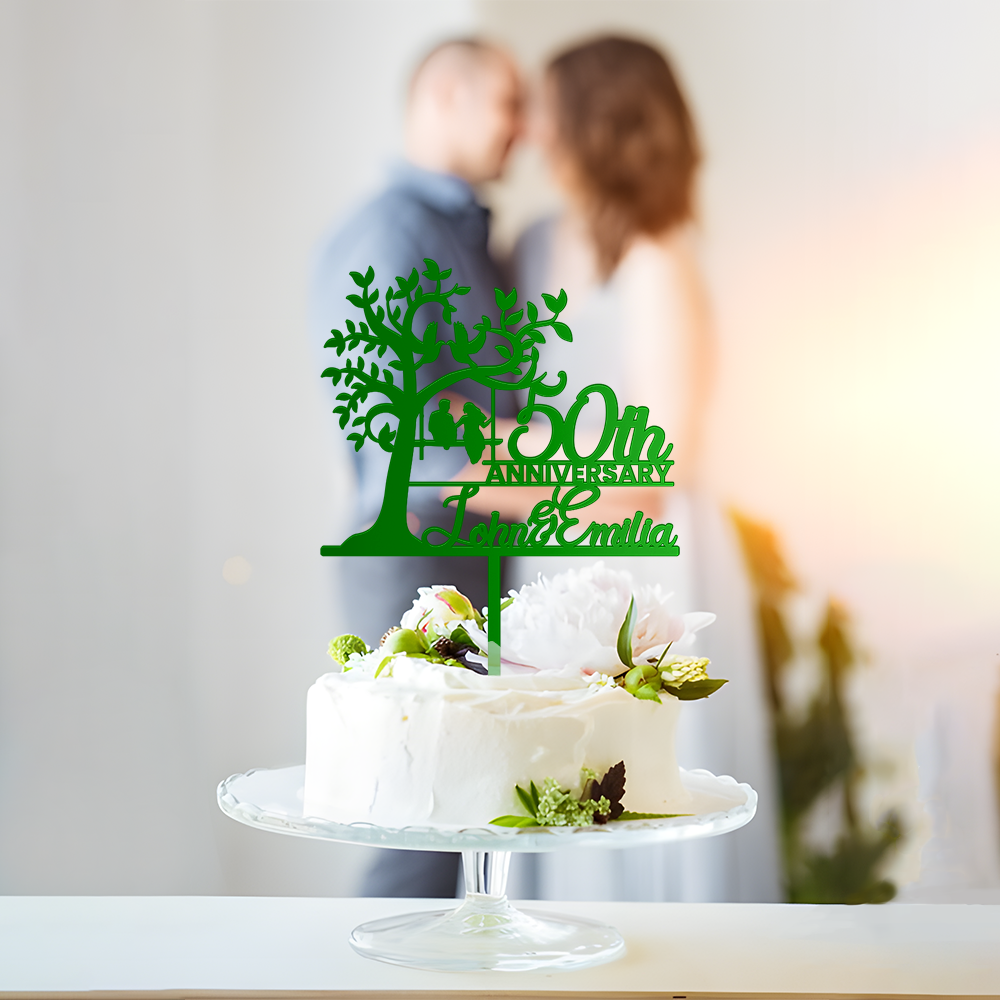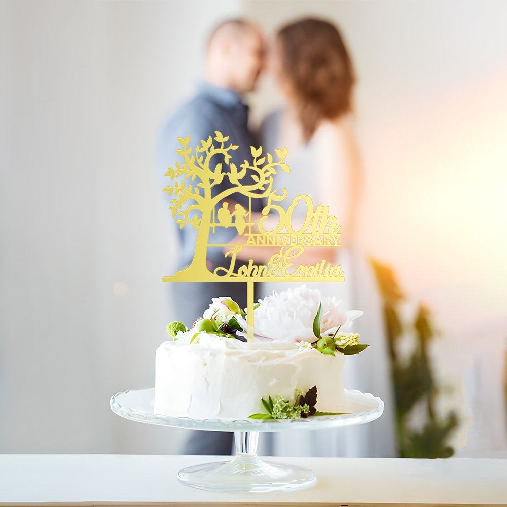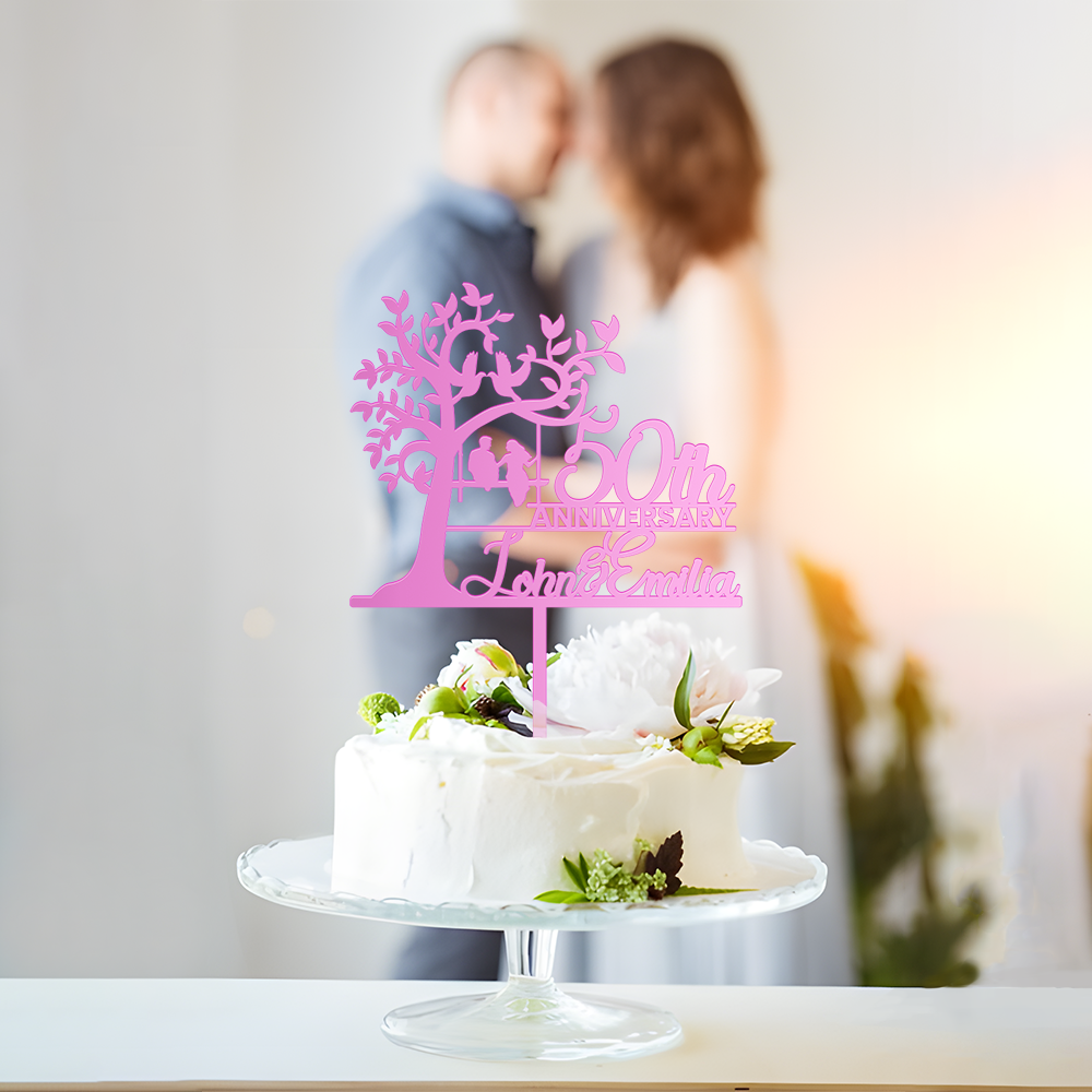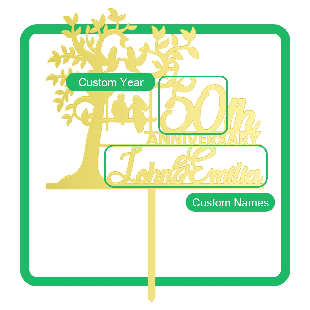 Personalized Wedding Anniversary Cake Topper in Acrylic Tree Design Custom Names and Years