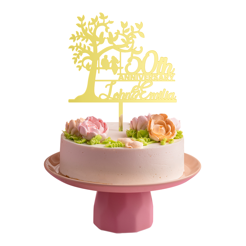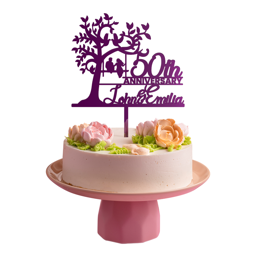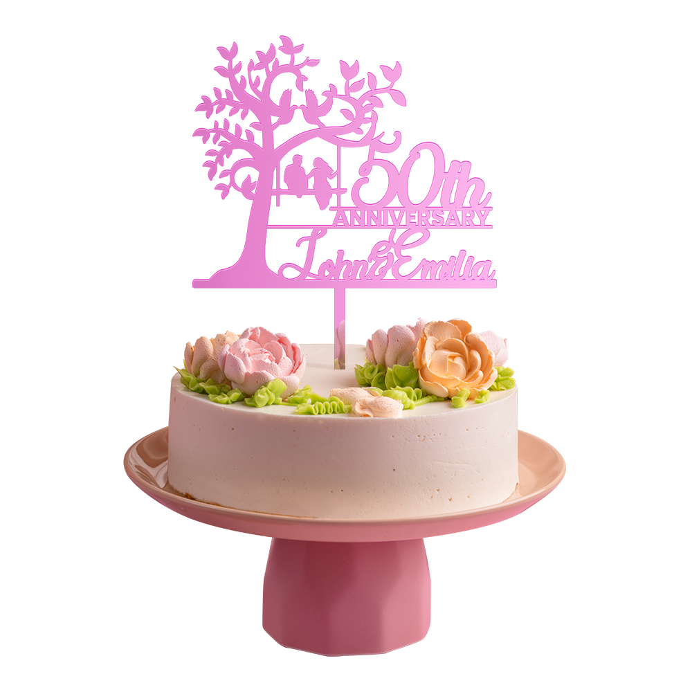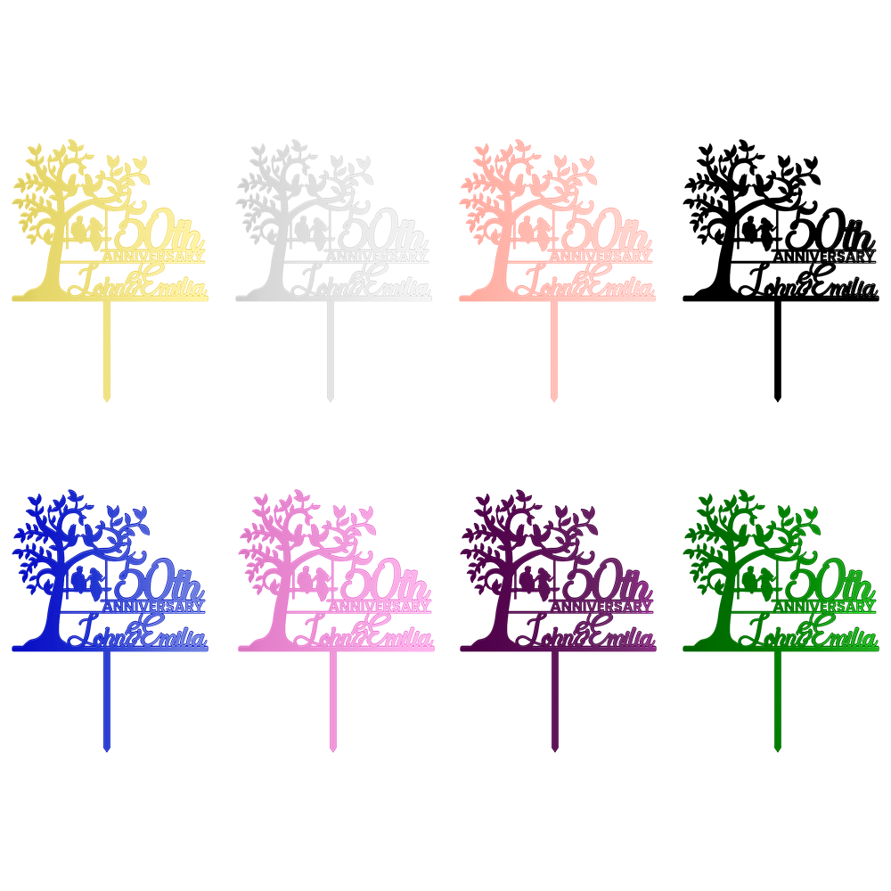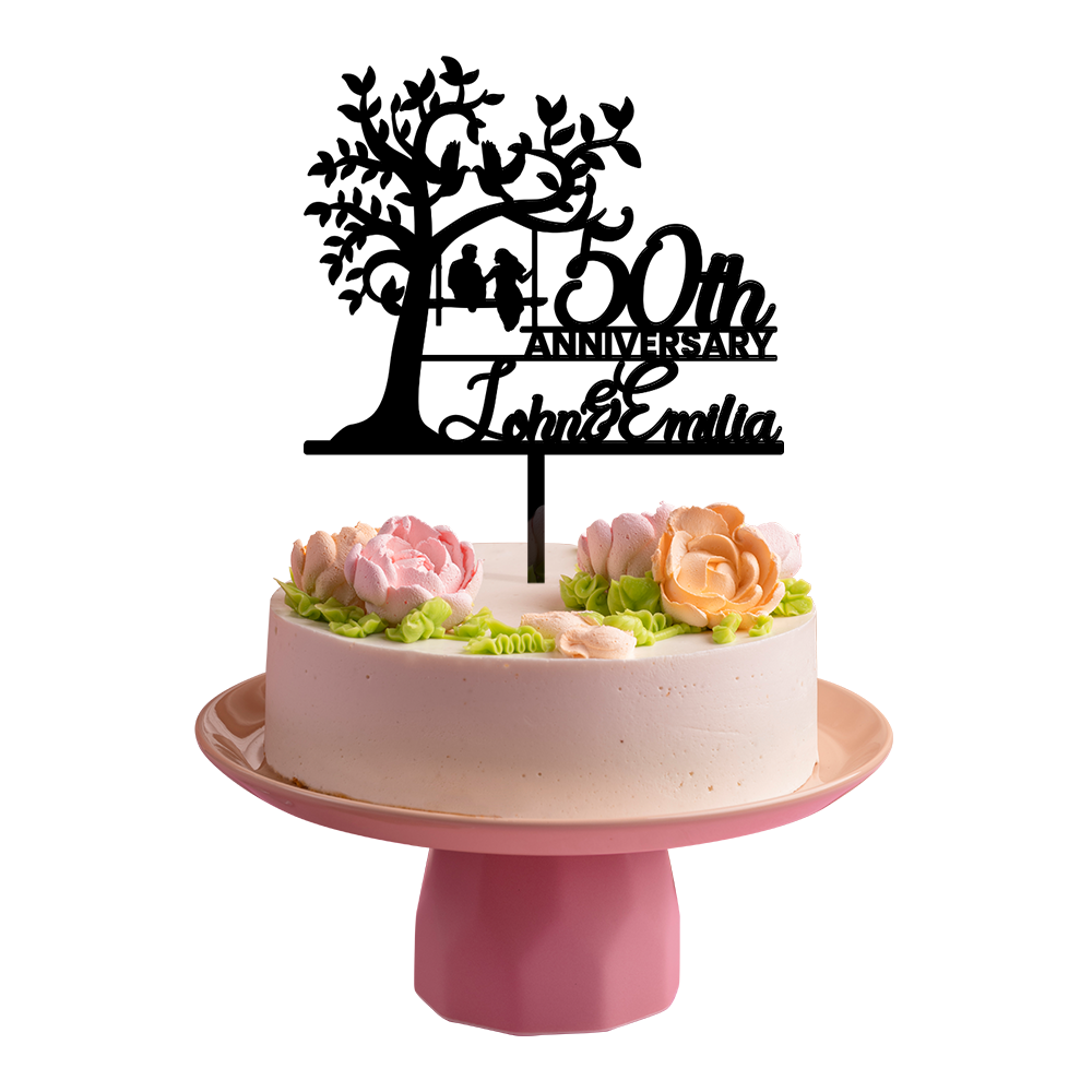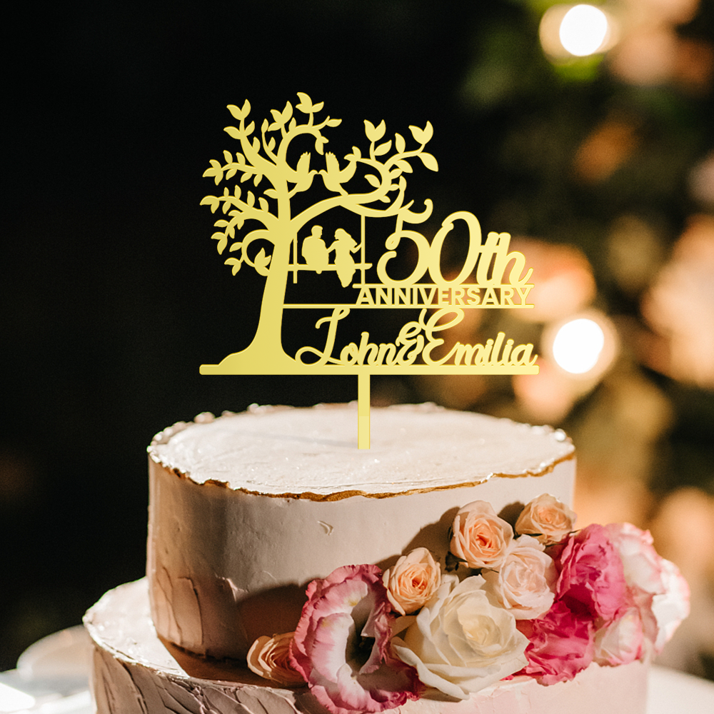 Personalized Wedding Anniversary Cake Topper in Acrylic Tree Design Custom Names and Years