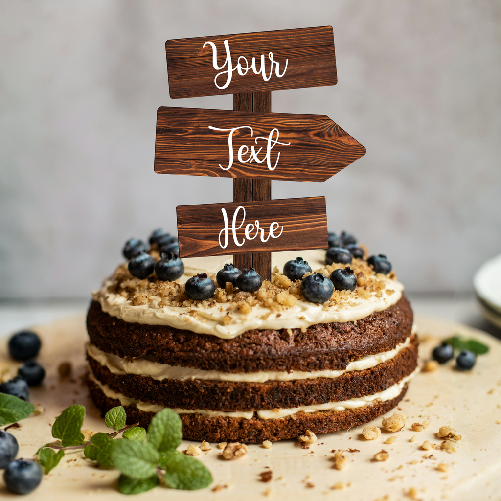 • Features a wooden guidepost design that adds a touch of rustic style to any cake.