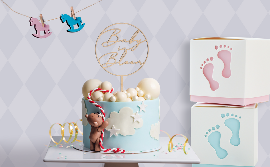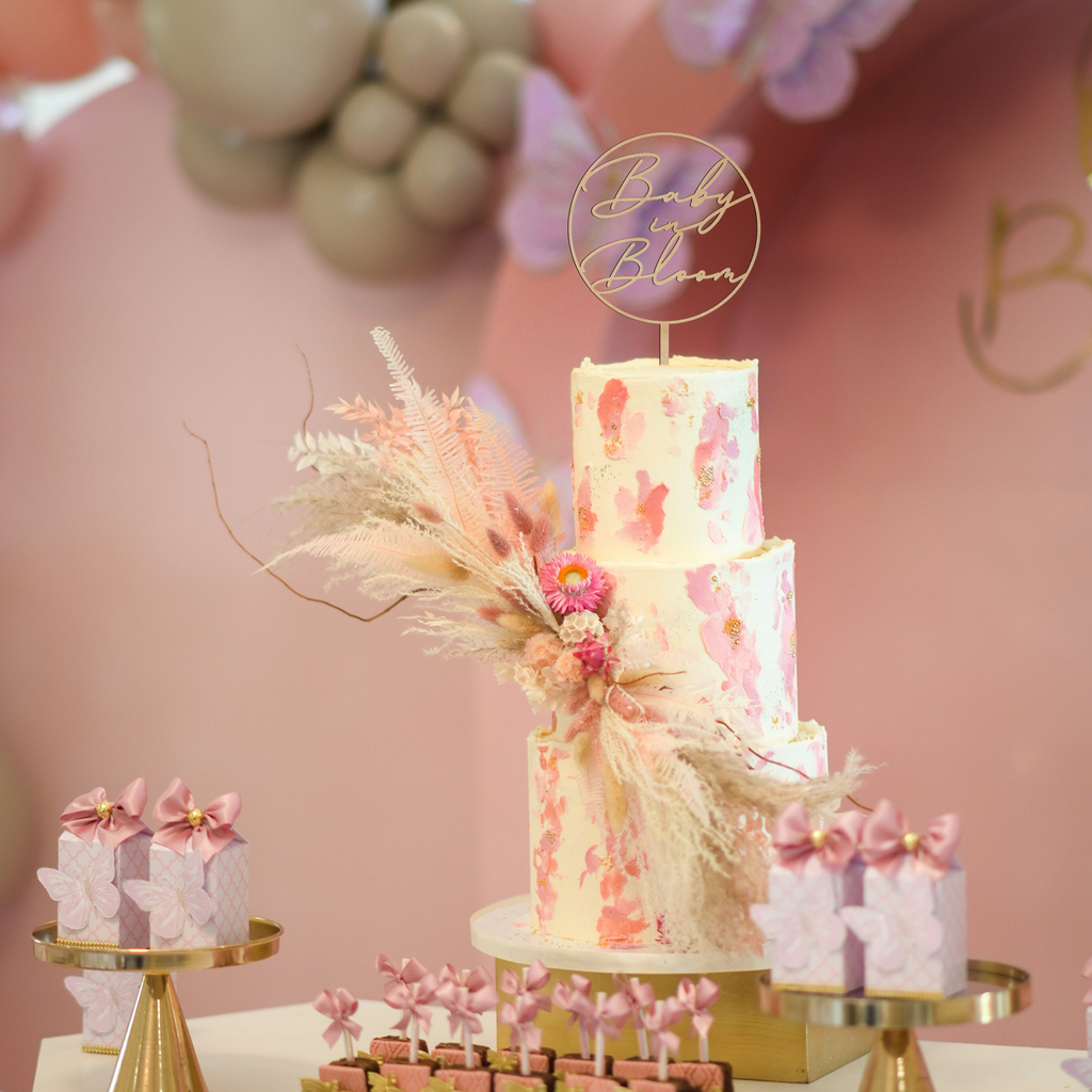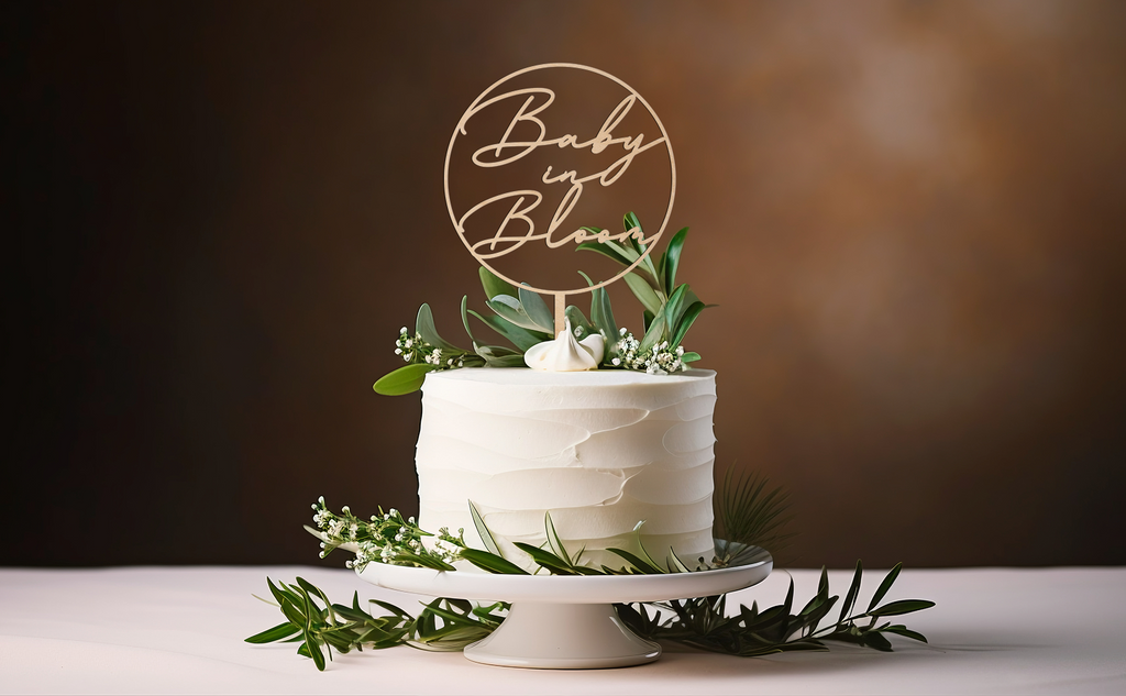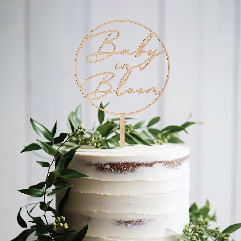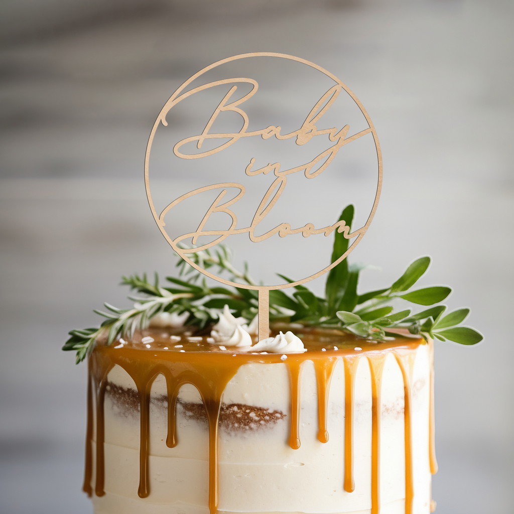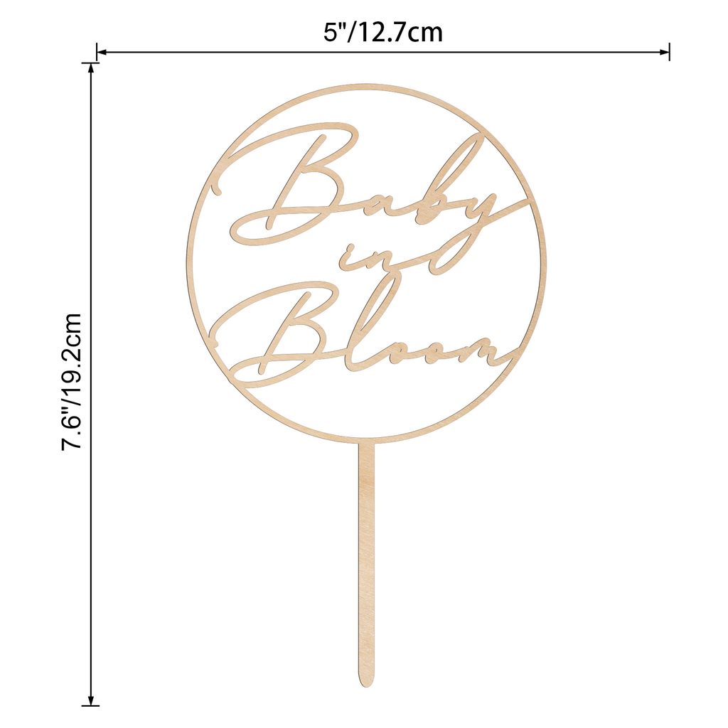 Baby in Bloom Wooden Cake Topper Round Frame for Baby Shower Celebrations