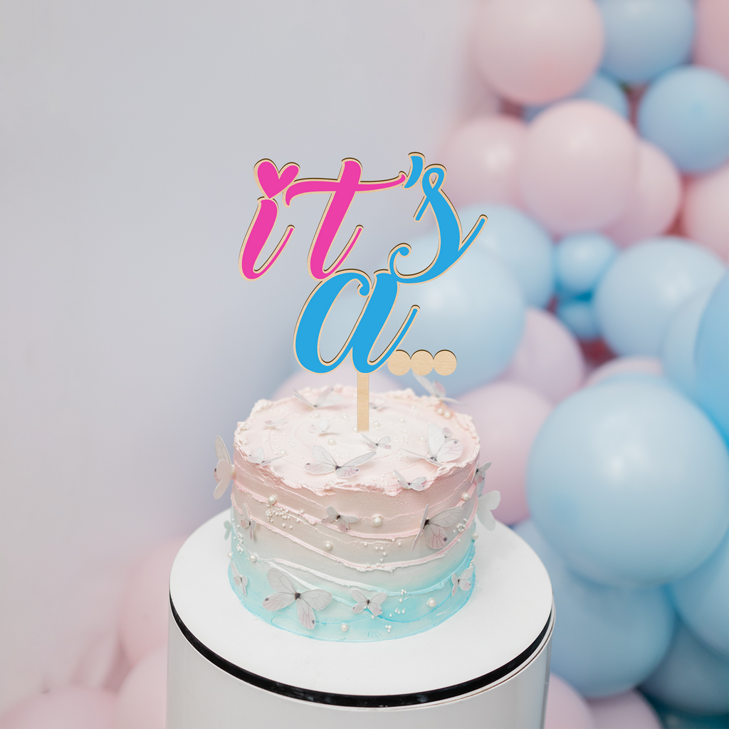 It's a... Wooden Cake Topper for Gender Reveal Baby Shower Celebrations