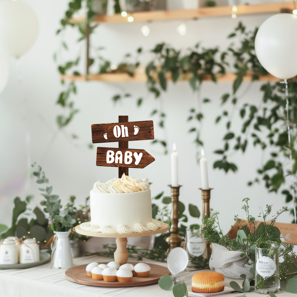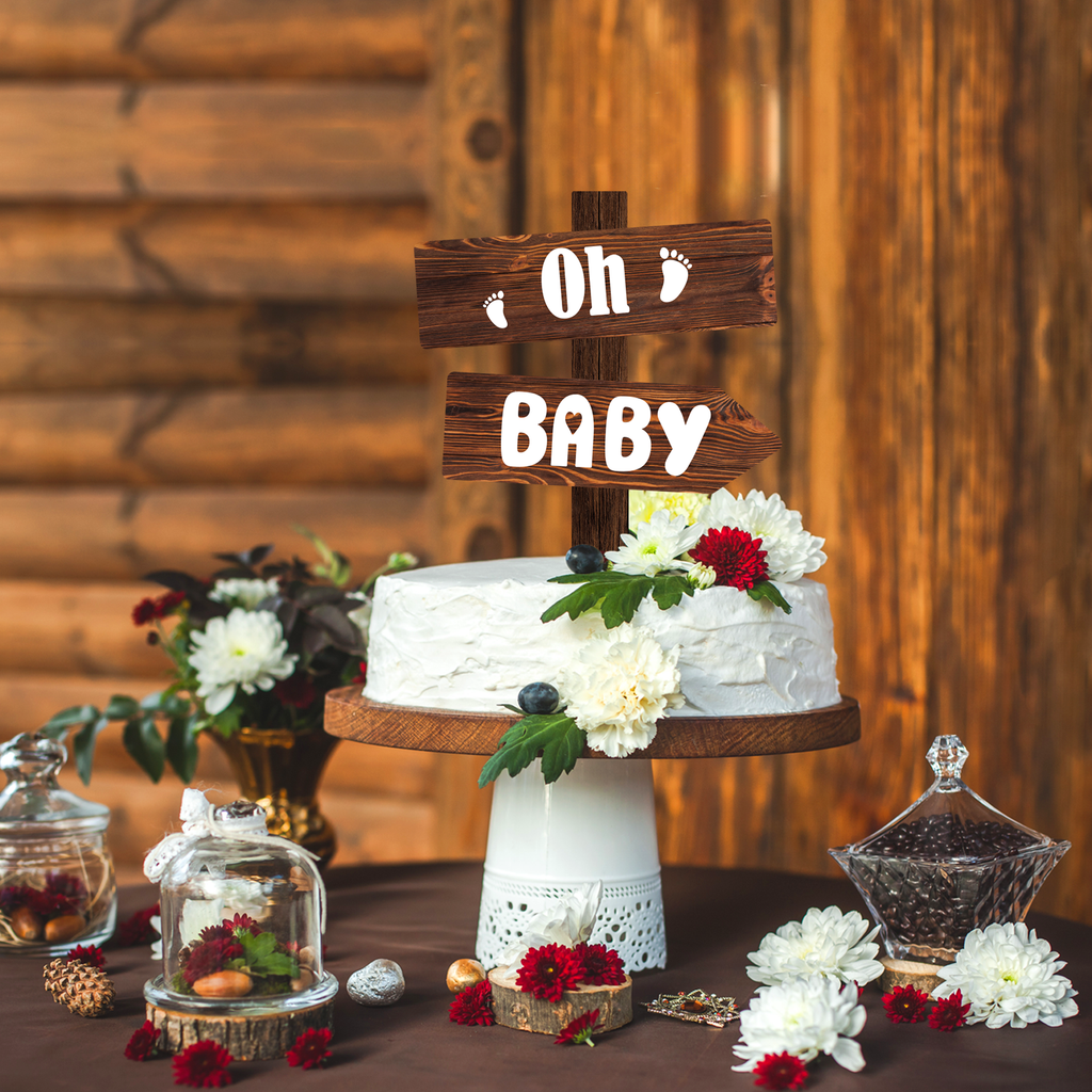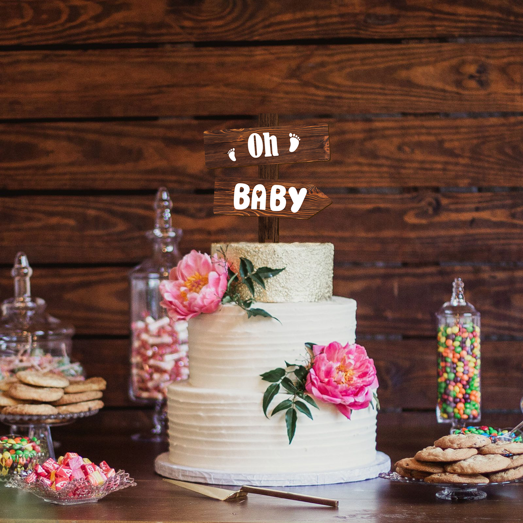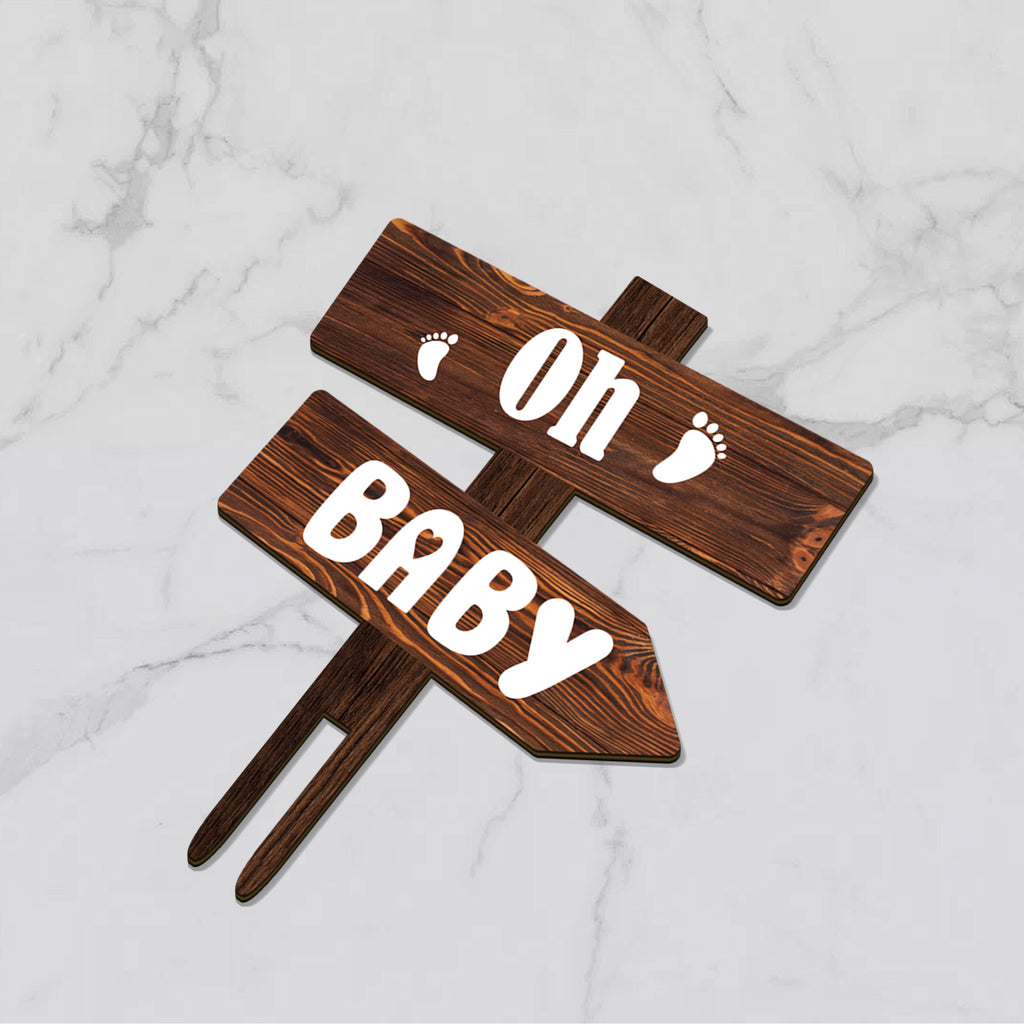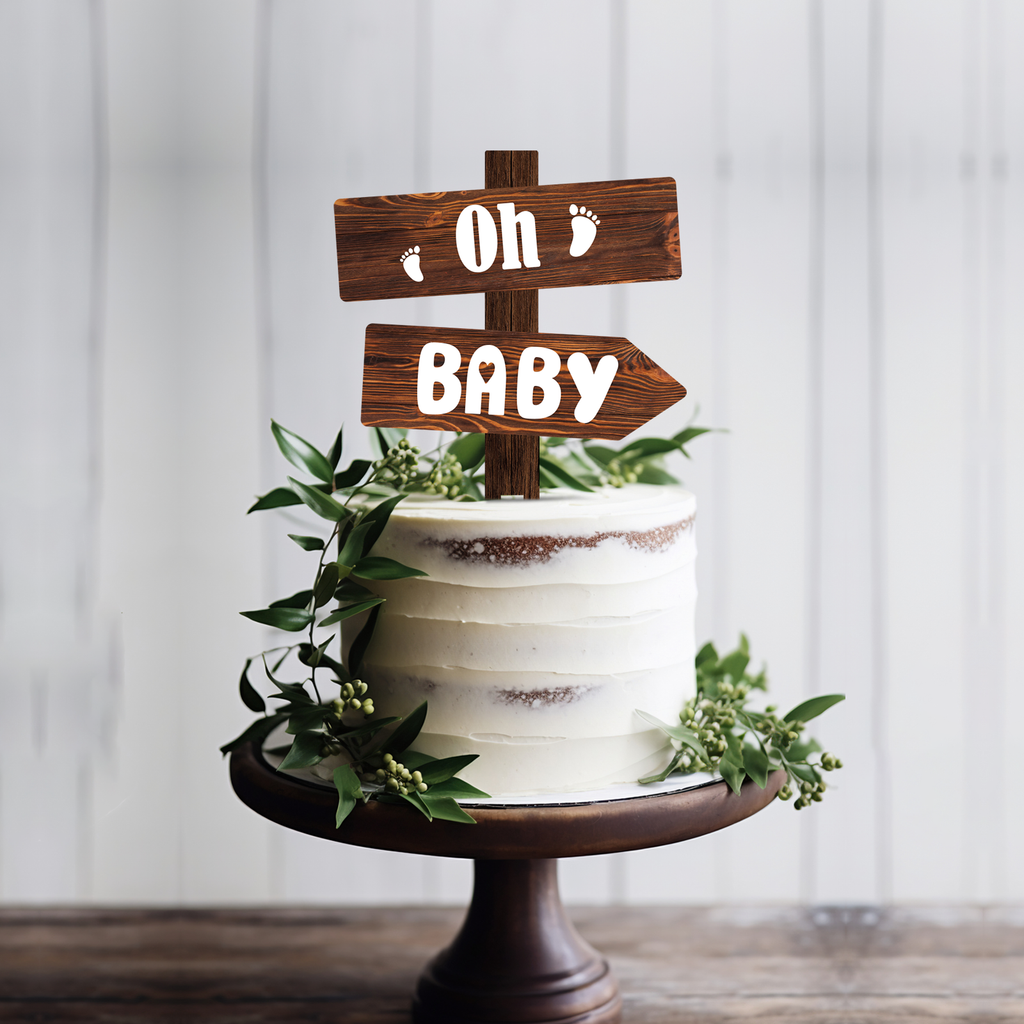Rustic Oh Baby Cake Topper in Wood Baby Shower Party Cake Decoration for Baby Boy Baby Girl