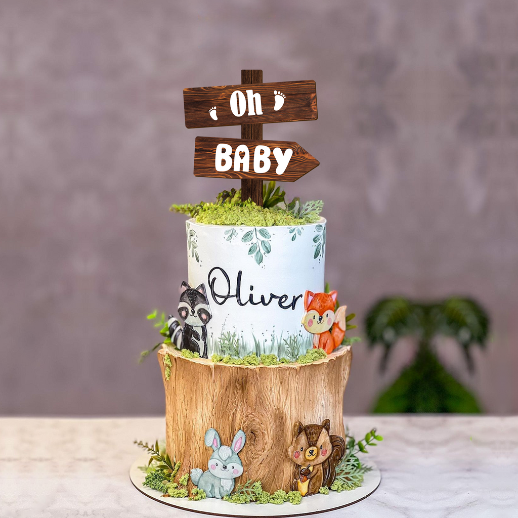 UV printing technology: crisp and vibrant wood grain details printed on the cake topper will enhance the rustic charm of your birthday.