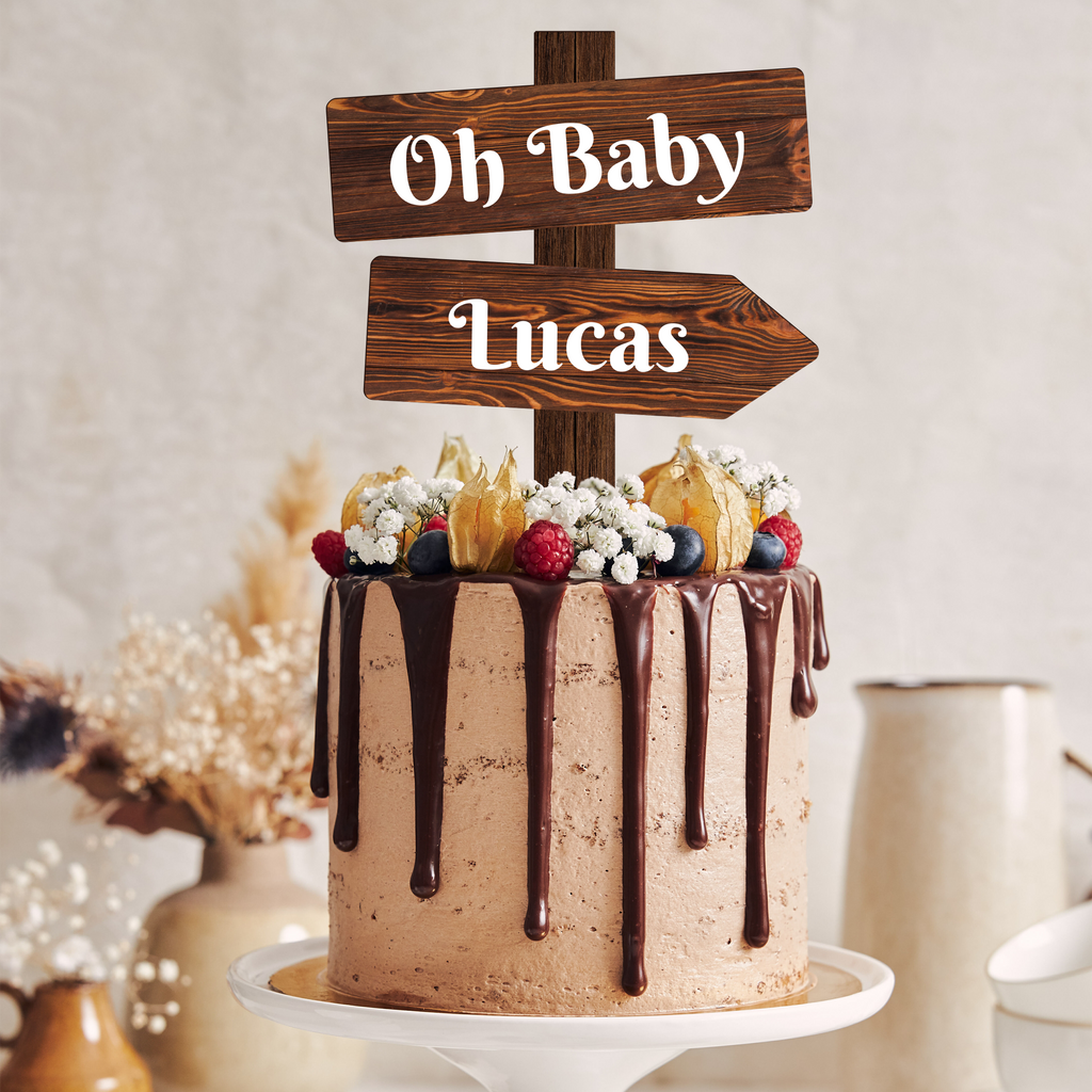 Rustic Oh Baby Cake Topper in Wood Personalized Baby Shower Cake Topper Custom Baby Name Cake Decoration