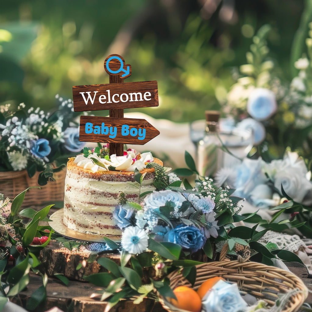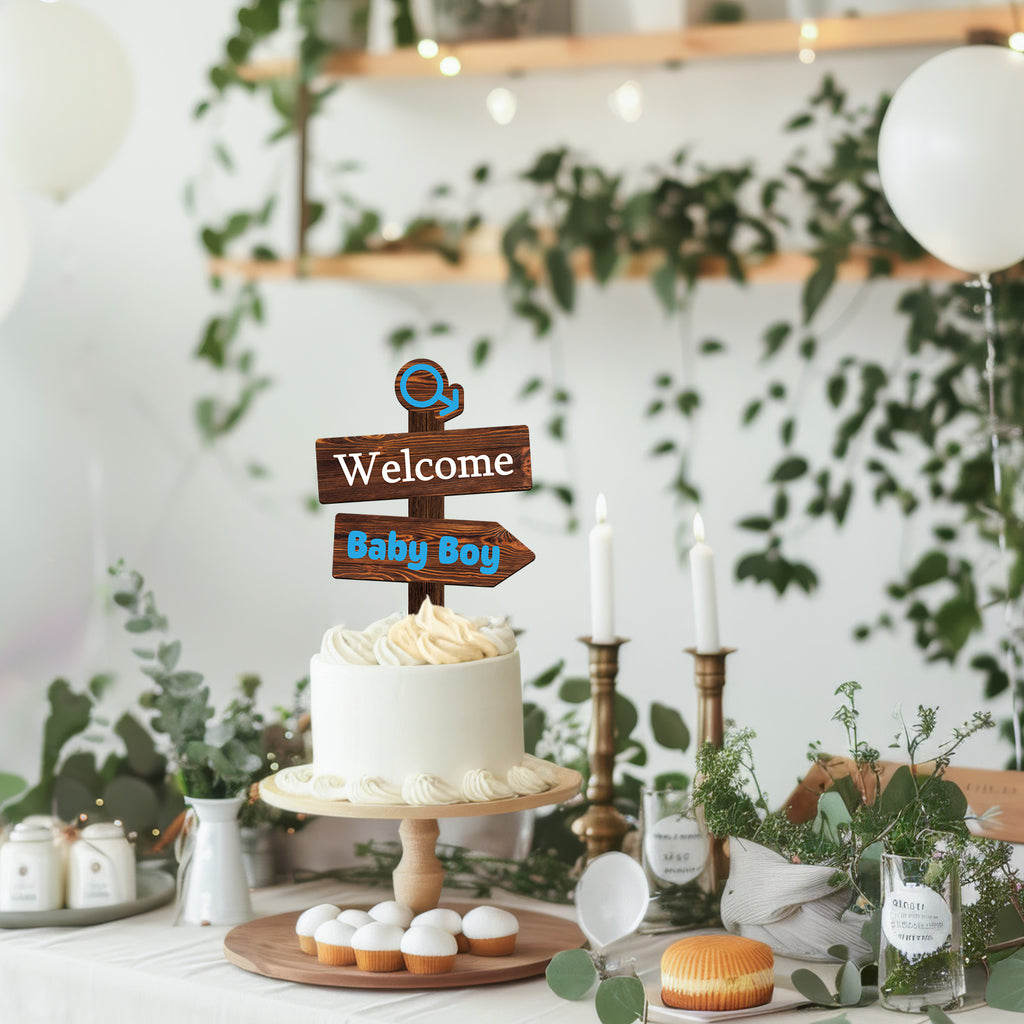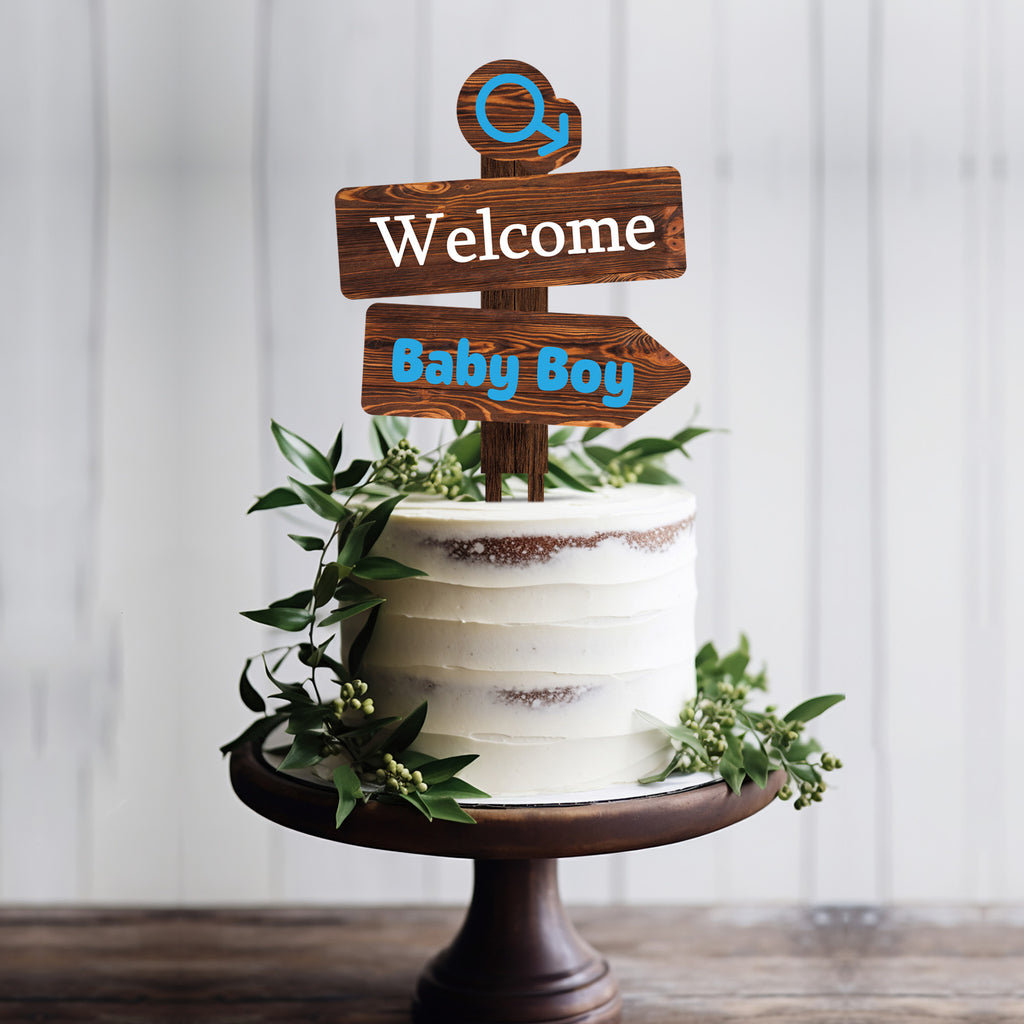 Rustic Welcome Baby Boy Cake Topper in Wood Baby Shower Gender Reveal Party Cake Decoration