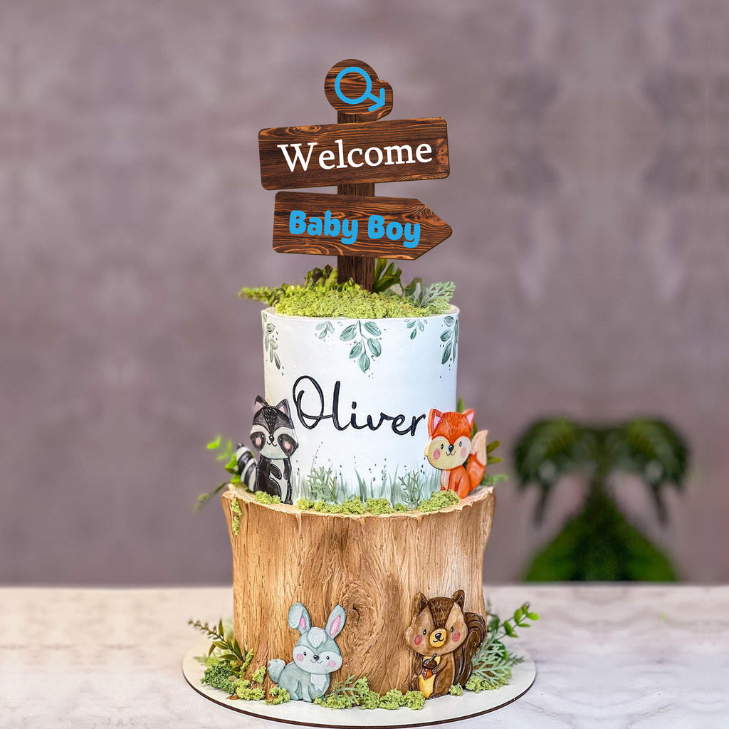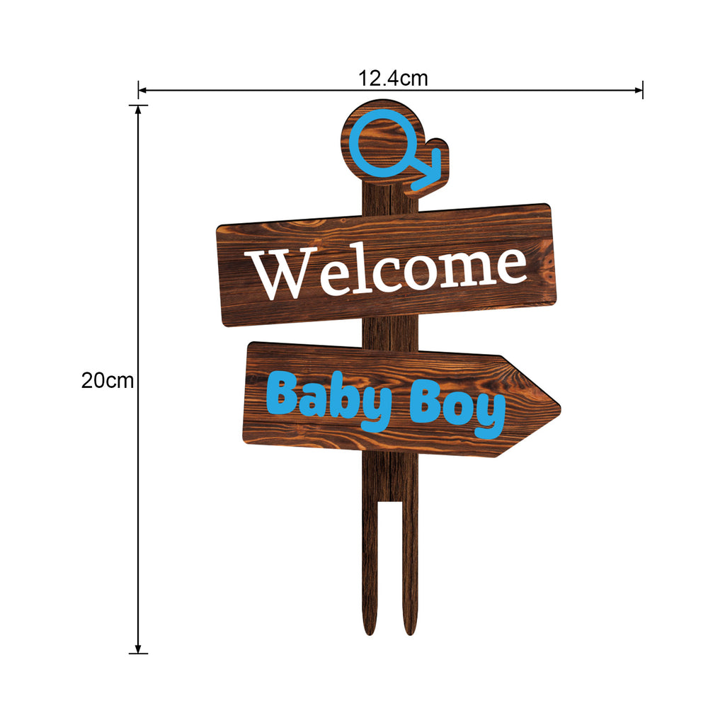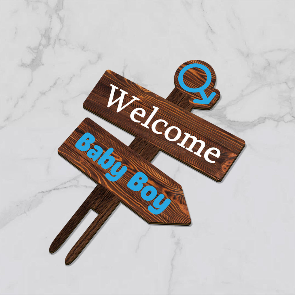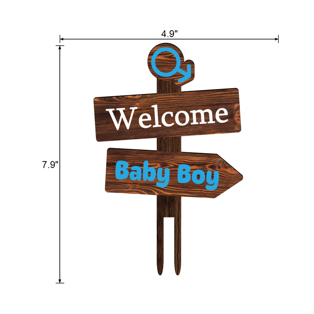 Rustic Welcome Baby Boy Cake Topper in Wood Baby Shower Gender Reveal Party Cake Decoration