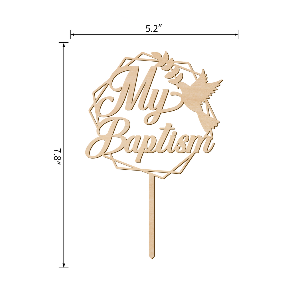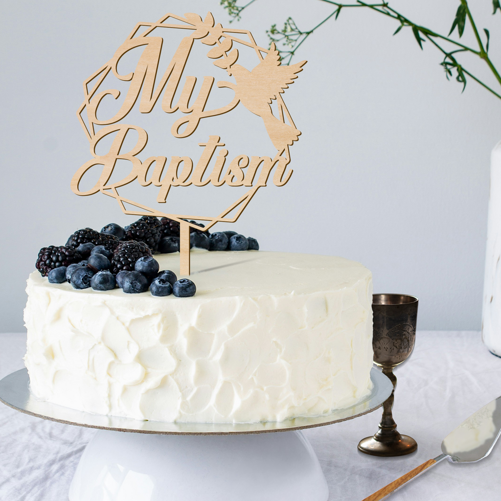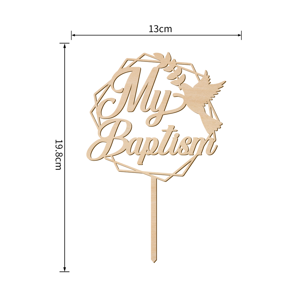 Celebrate your little one's special day with our elegant 'My Baptism' wooden cake topper. Crafted from high-quality wood, this topper adds a touch of rustic charm to your baptism celebration. Its intricate design and natural finish make it a beautiful keepsake that can be treasured for years to come. Perfect for adding a warm and heartfelt touch to your cake.