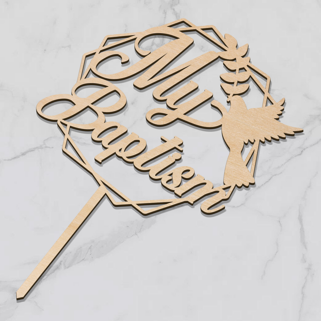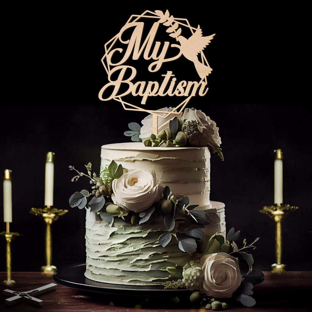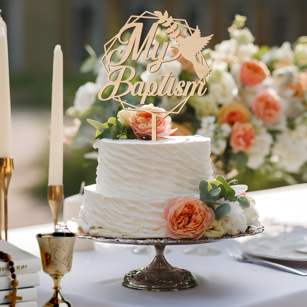 Celebrate your little one's special day with our elegant 'My Baptism' wooden cake topper. Crafted from high-quality wood, this topper adds a touch of rustic charm to your baptism celebration. Its intricate design and natural finish make it a beautiful keepsake that can be treasured for years to come. Perfect for adding a warm and heartfelt touch to your cake.