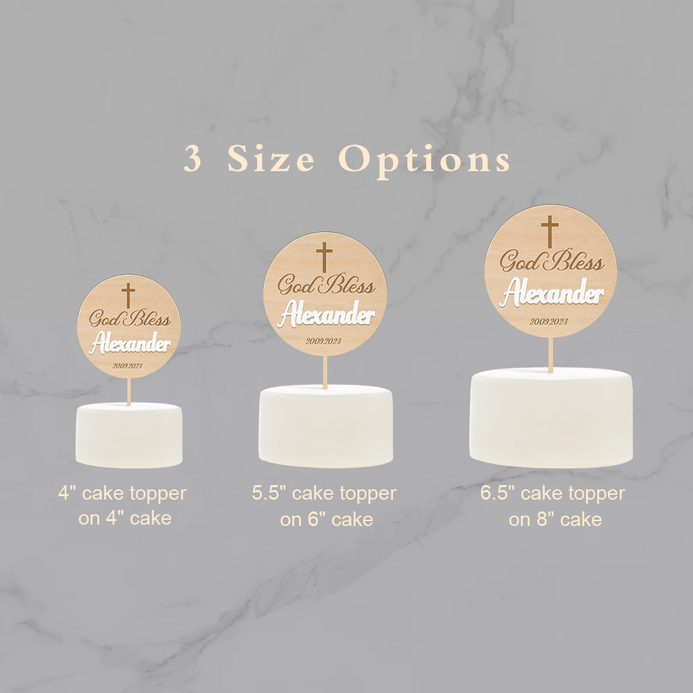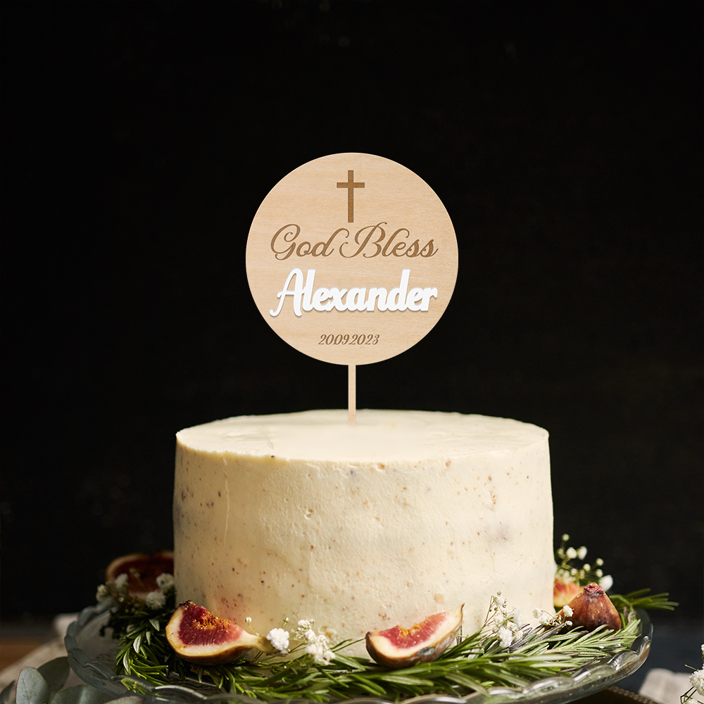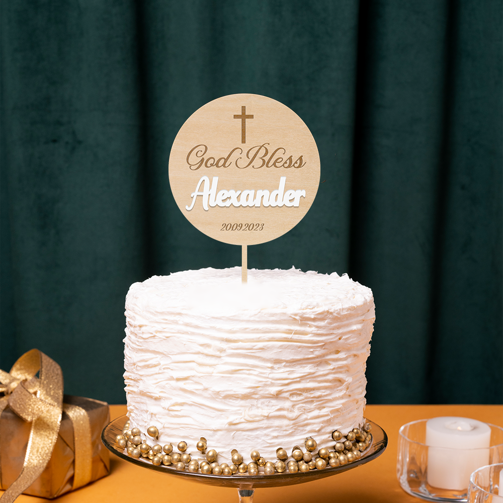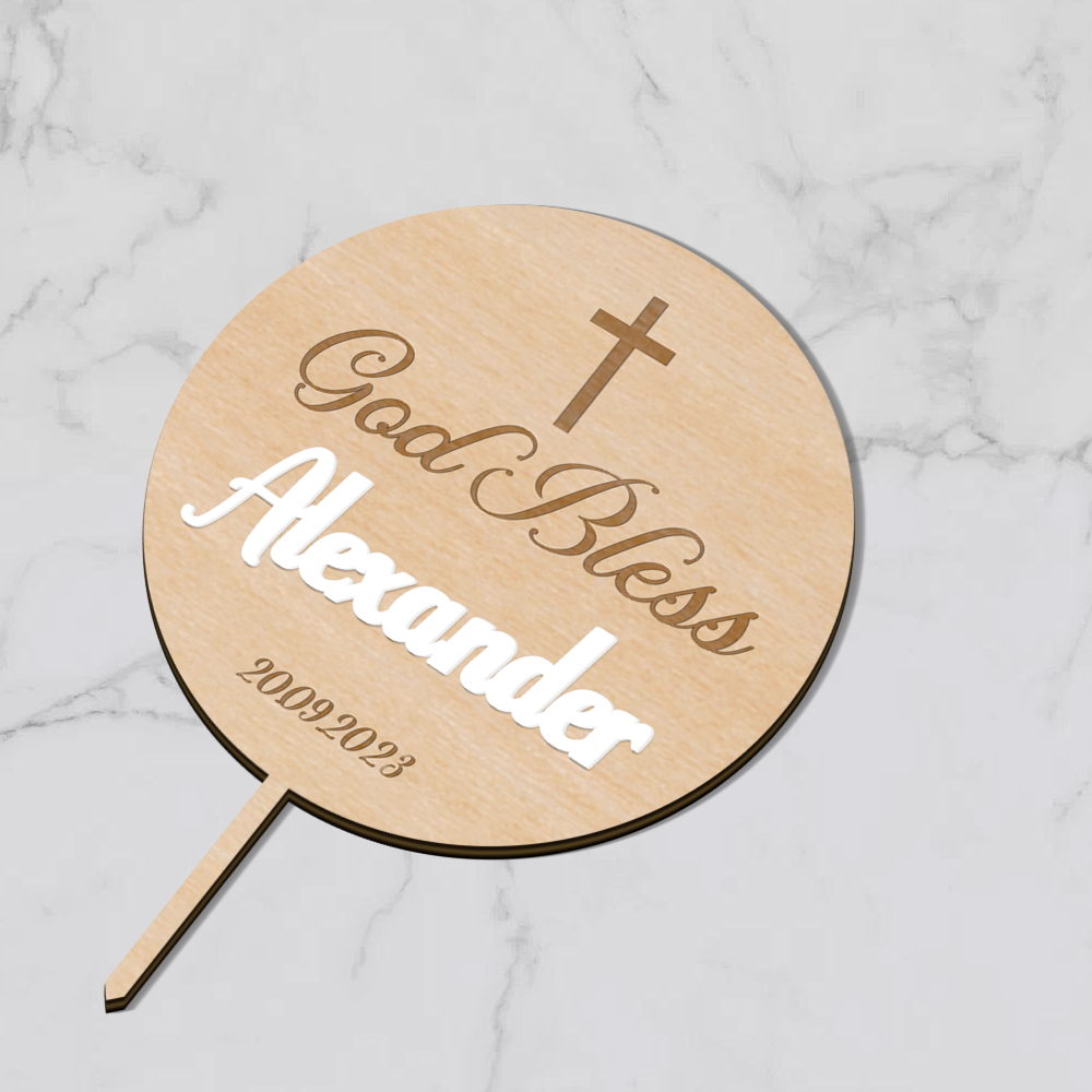 Personalized God Bless Baptism Cake Topper in Wood Acrylic Custom Name and Date