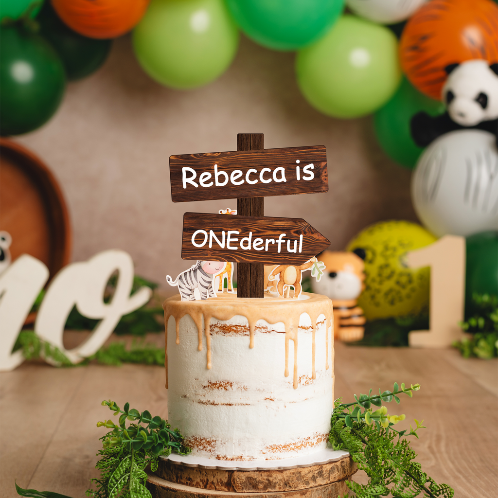 Onederful Cake Topper in Wood Personalized Name 1st Birthday Cake Topper for Boys and Girls First Birthday Party Decorations
