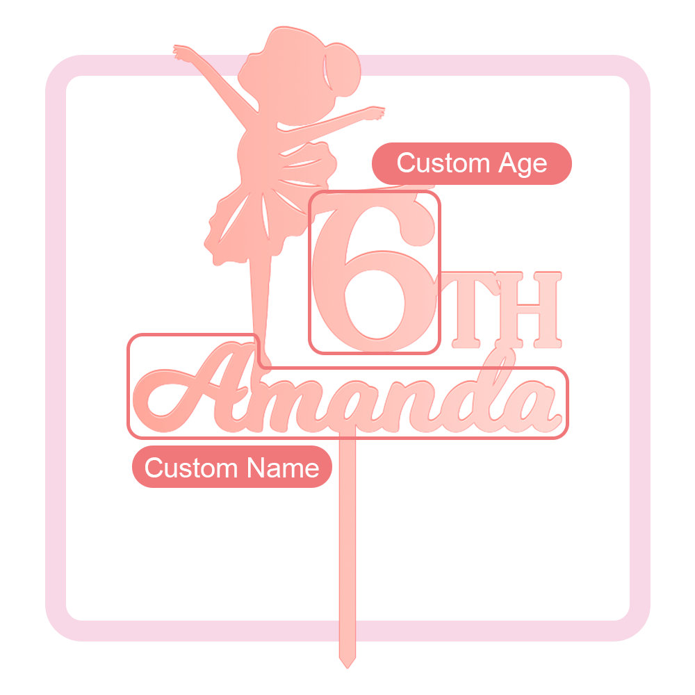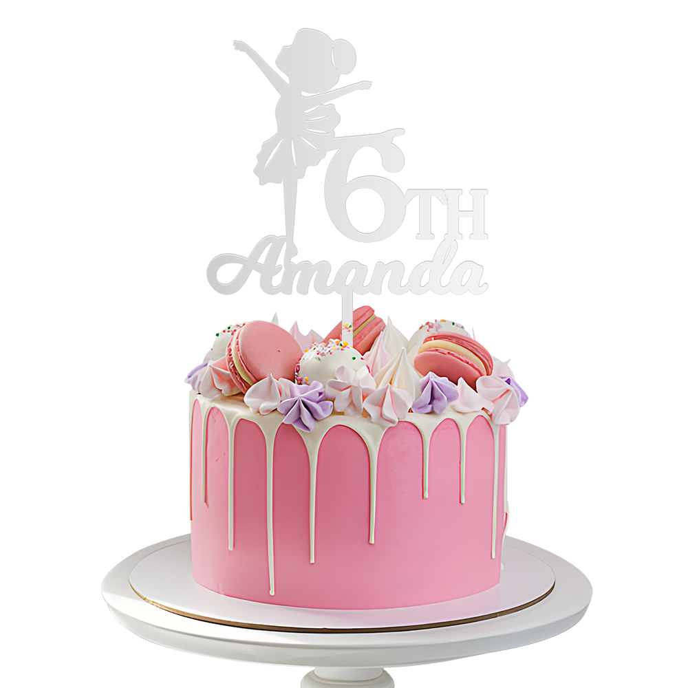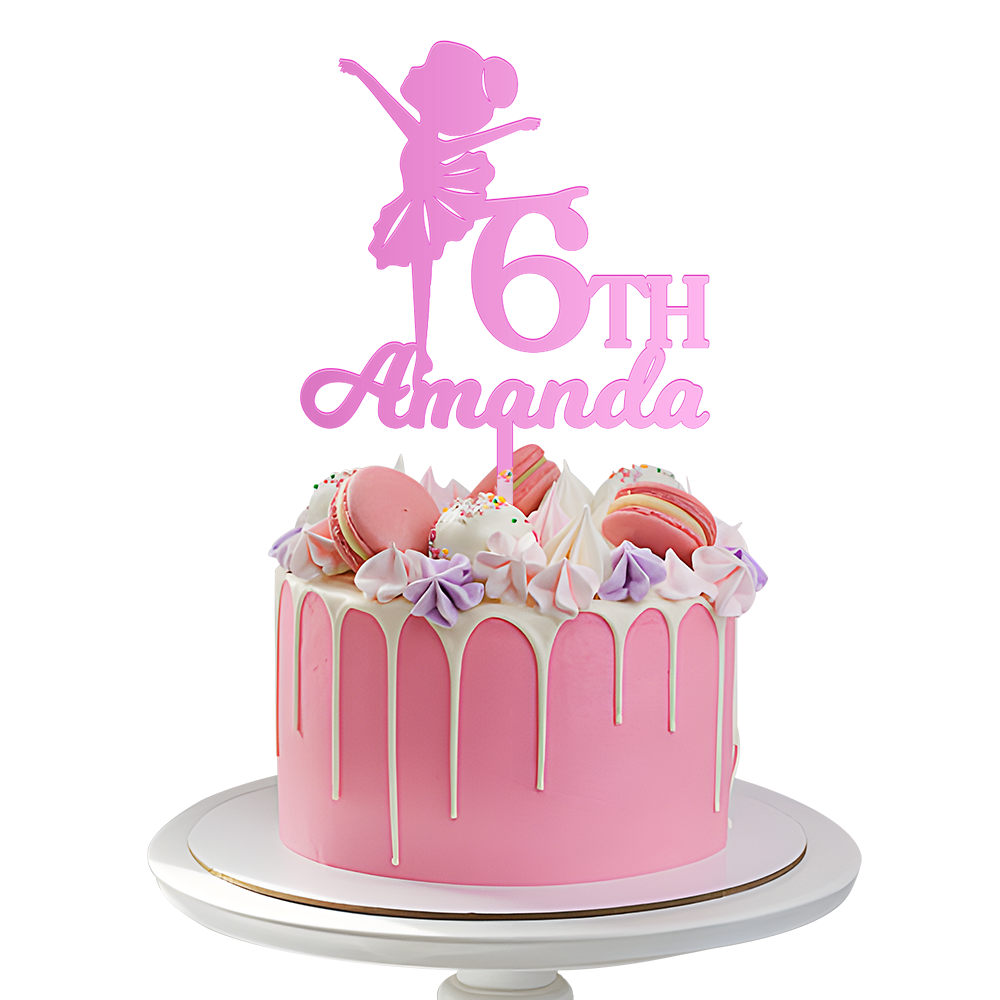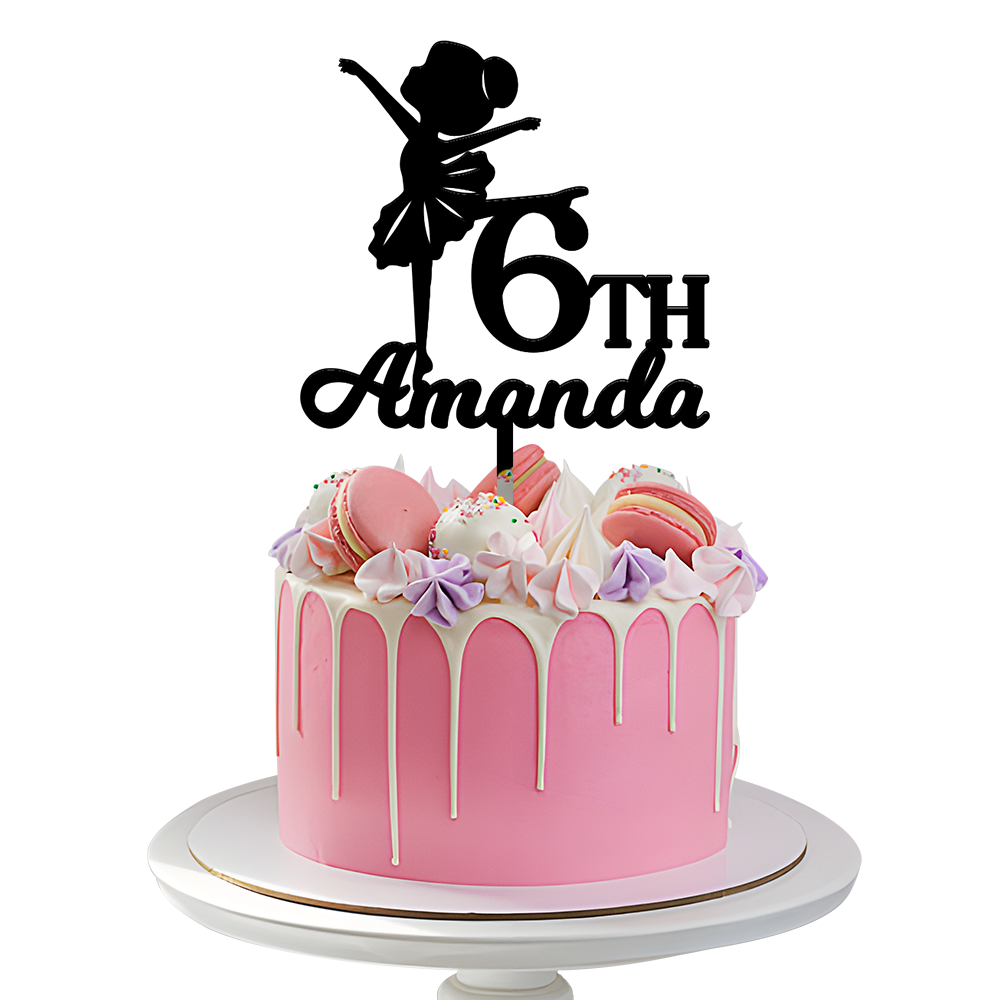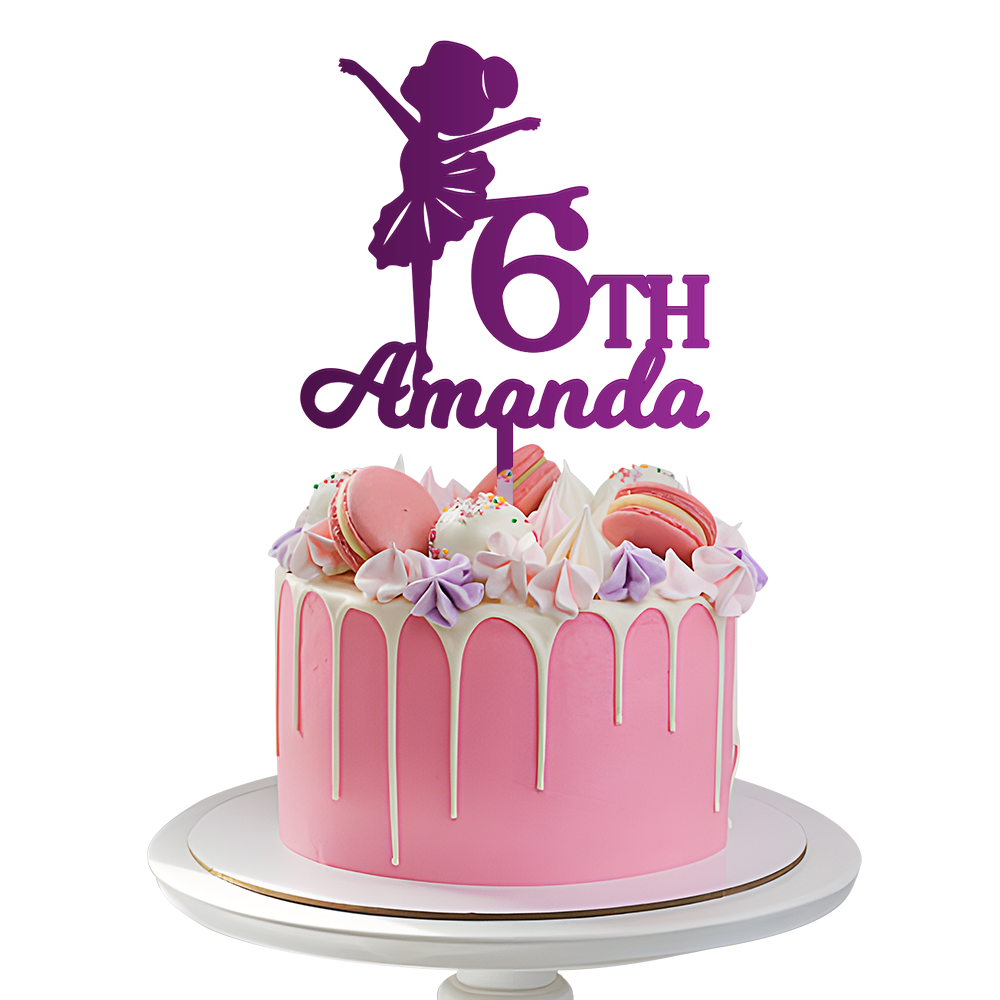 Personalized Ballerina Birthday Cake Topper in Acrylic Custom Name and Age Design 2