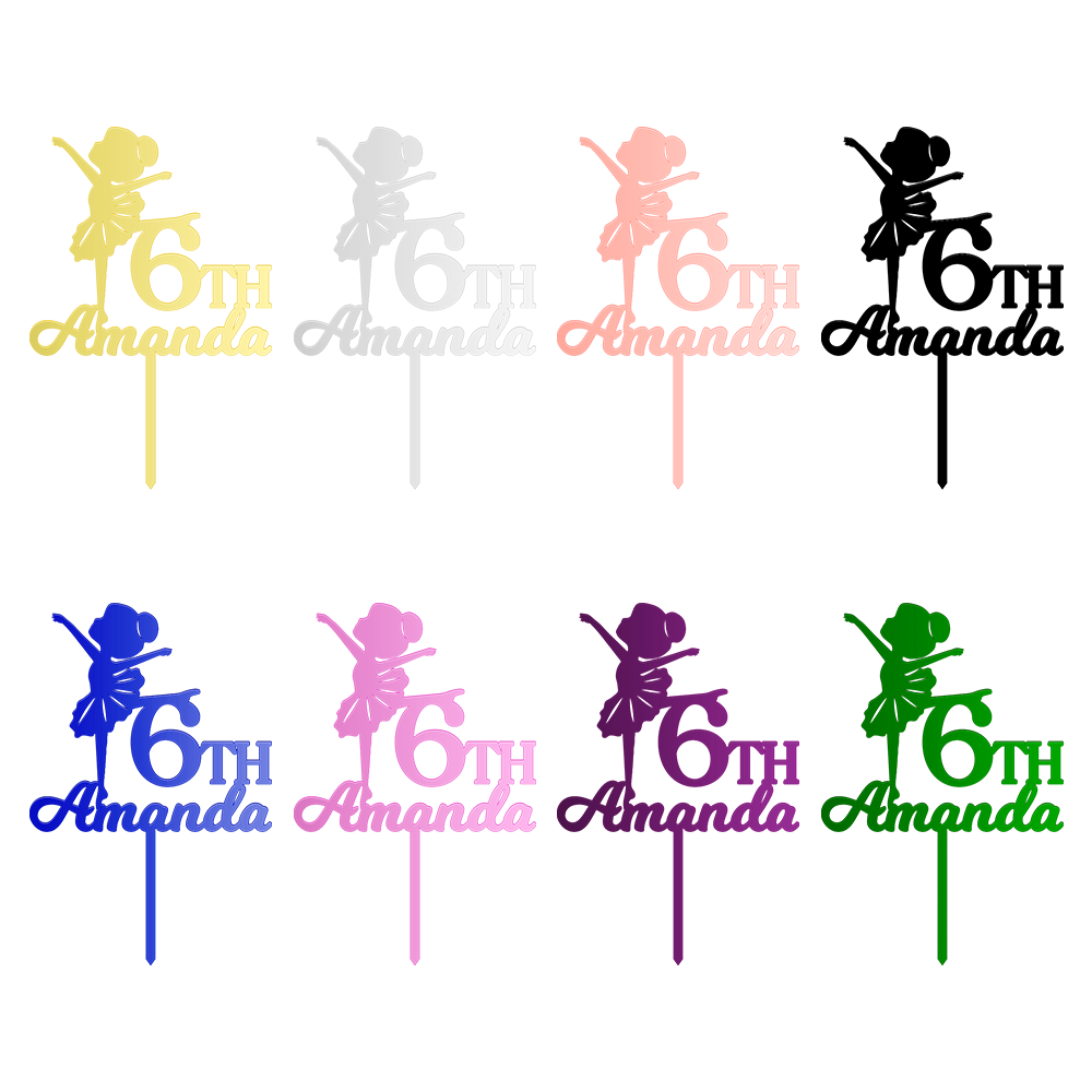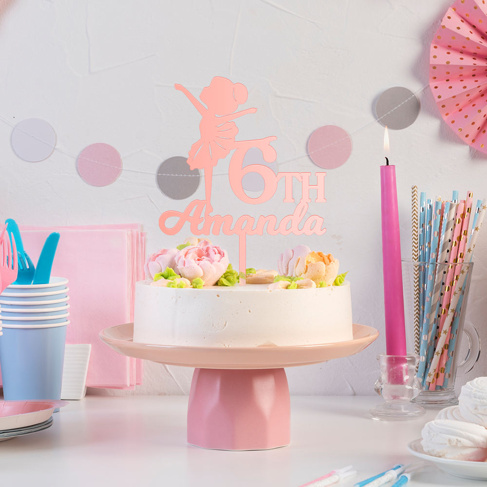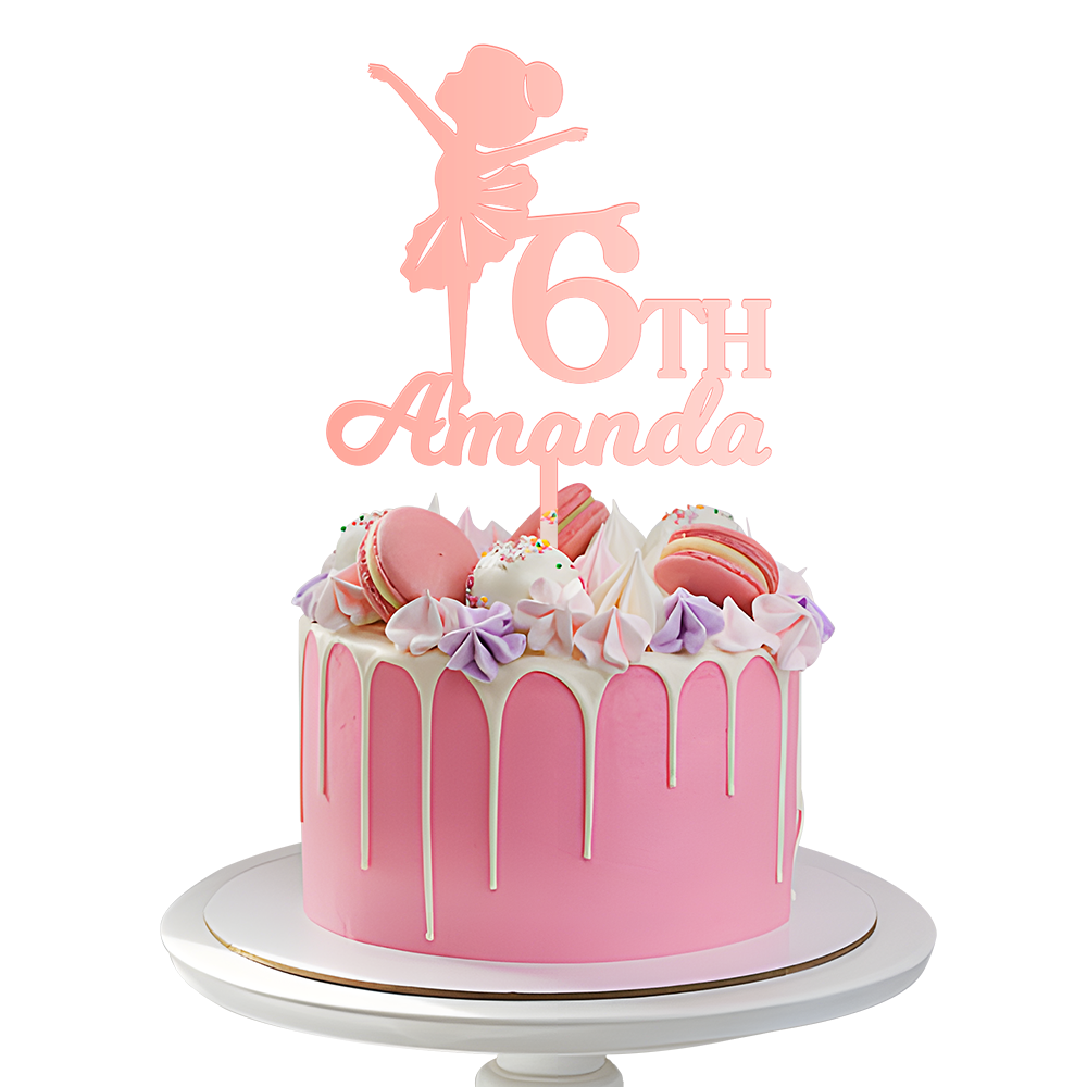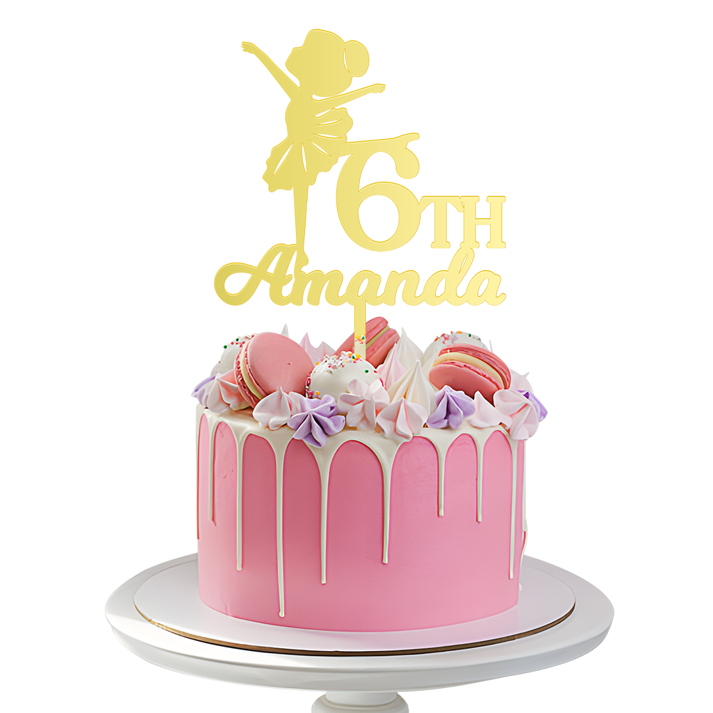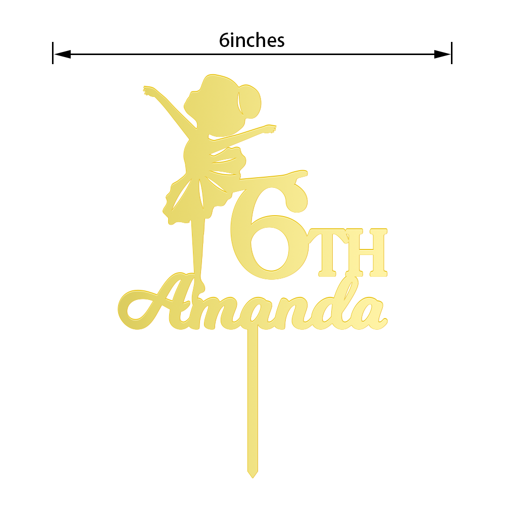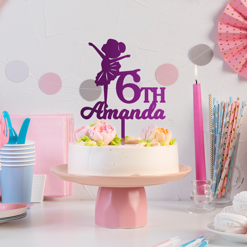 Personalized Ballerina Birthday Cake Topper in Acrylic Custom Name and Age Design 2