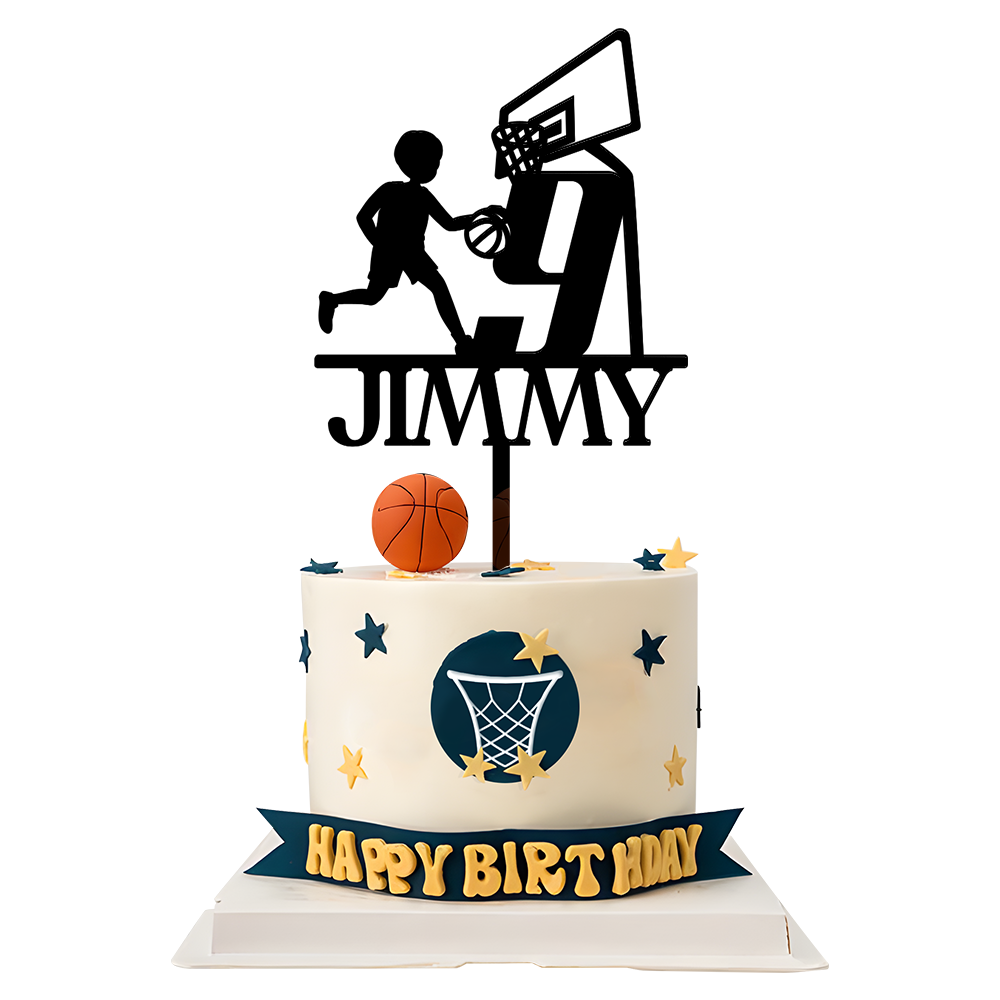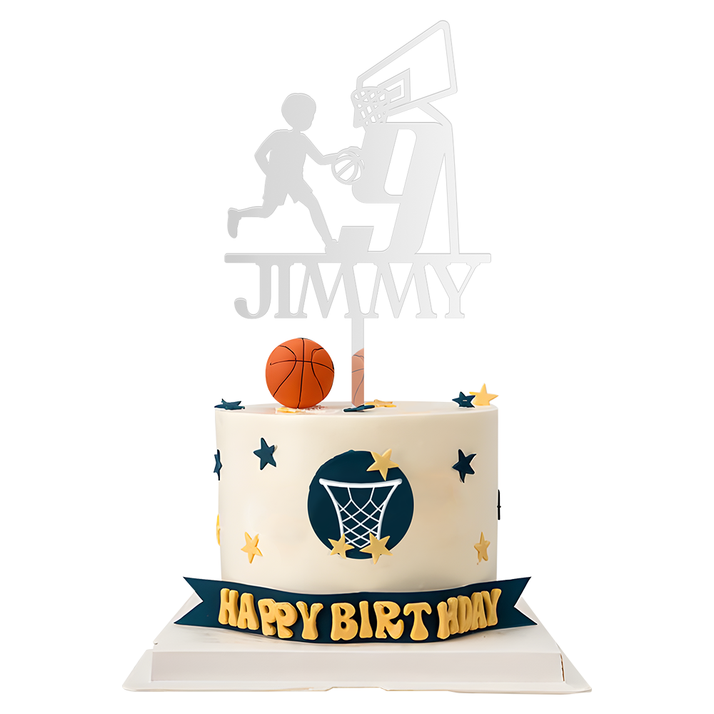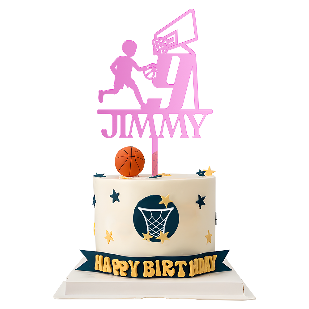 Personalized Birthday Cake Topper in Acrylic Basketball Theme Custom Name and Age Design 2