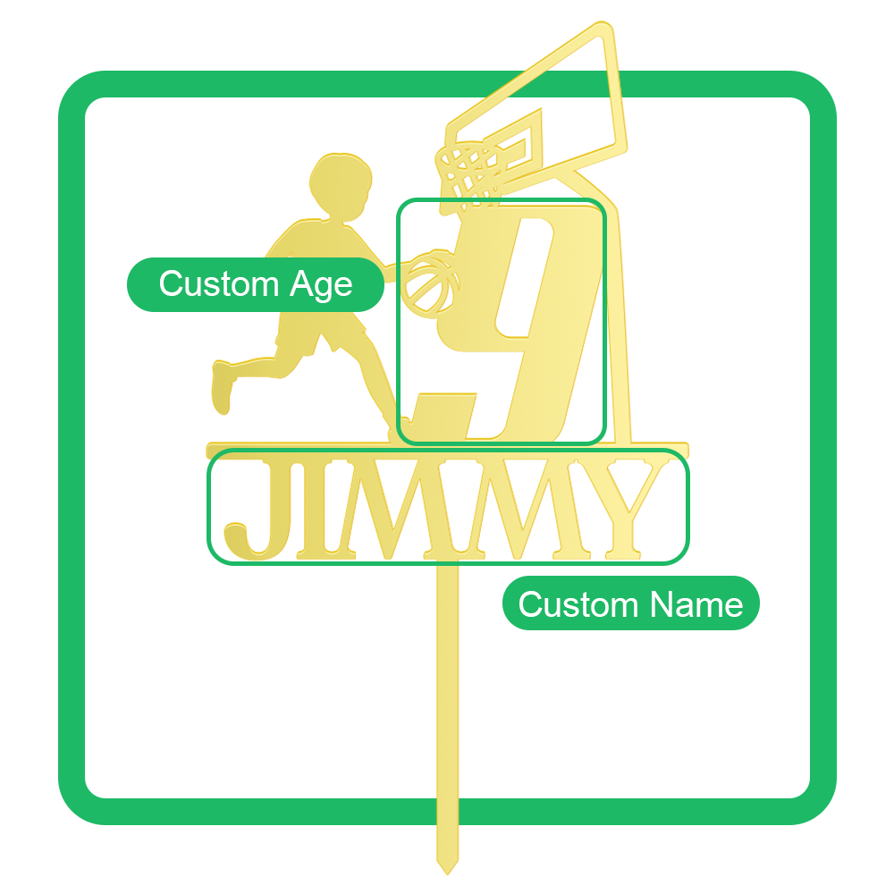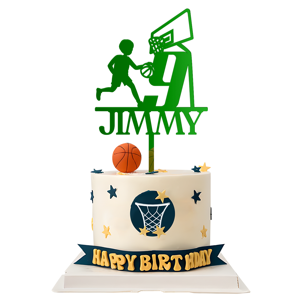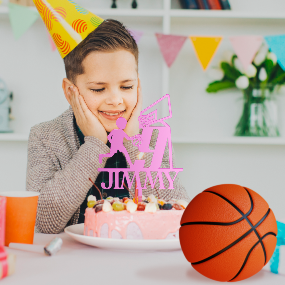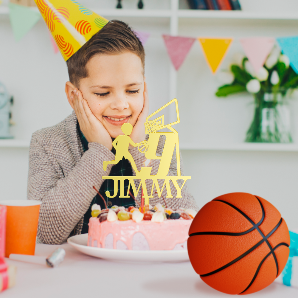 Personalized Birthday Cake Topper in Acrylic Basketball Theme Custom Name and Age Design 2