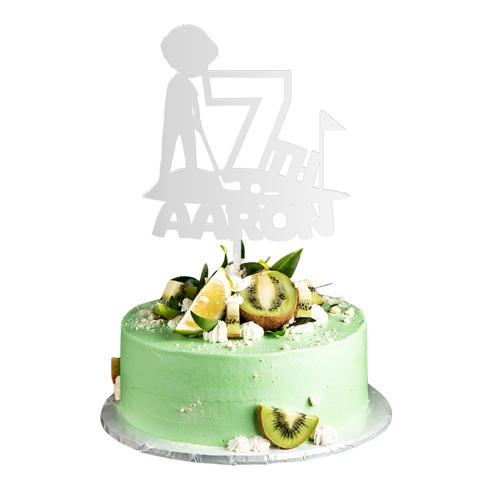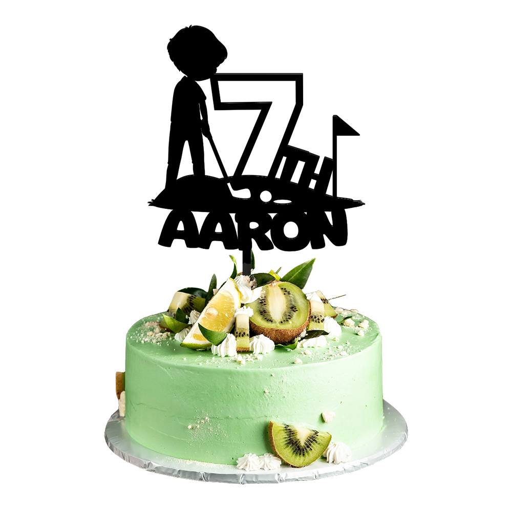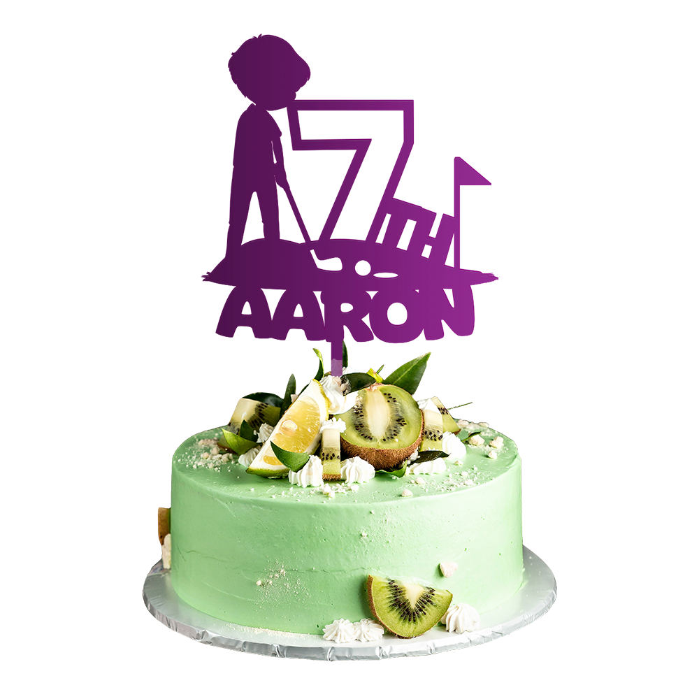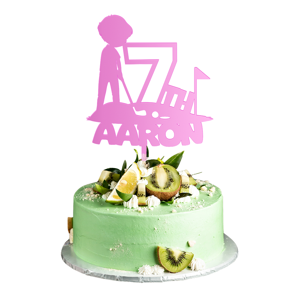 Personalized Birthday Cake Topper in Acrylic Golf Theme Custom Name and Age Design 2