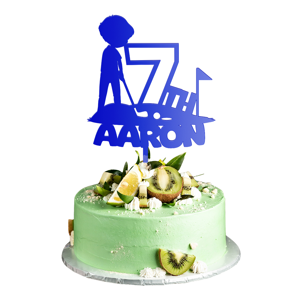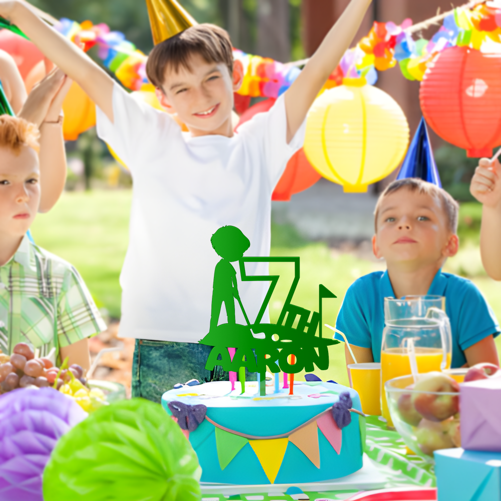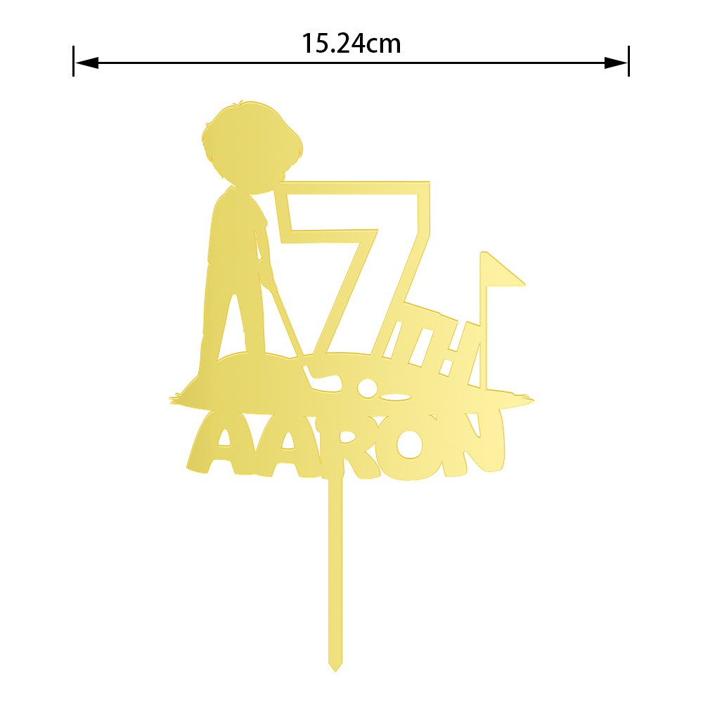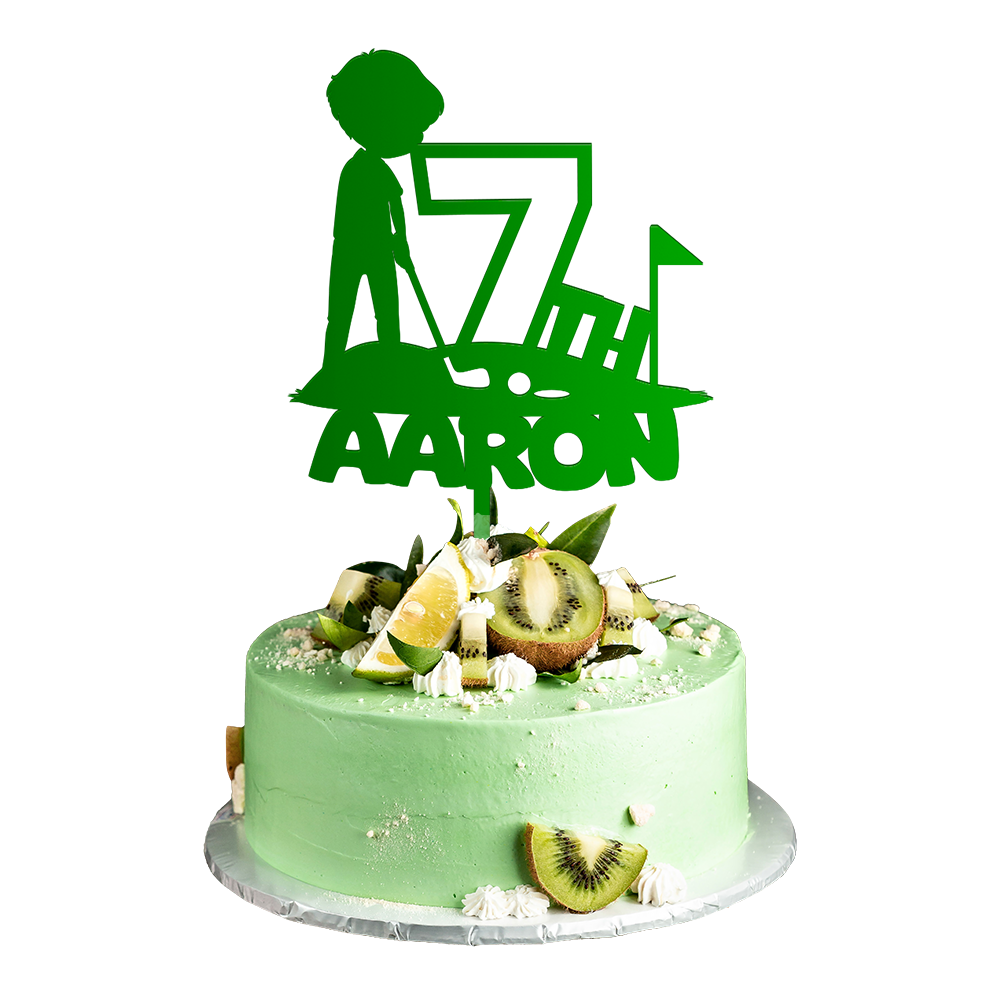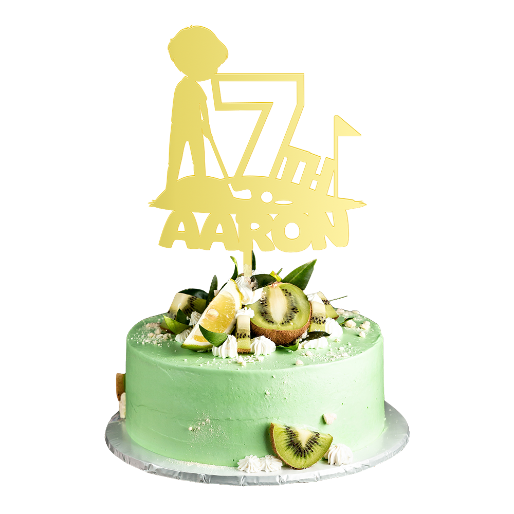 Personalized Birthday Cake Topper in Acrylic Golf Theme Custom Name and Age Design 2