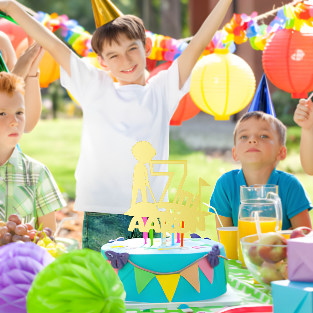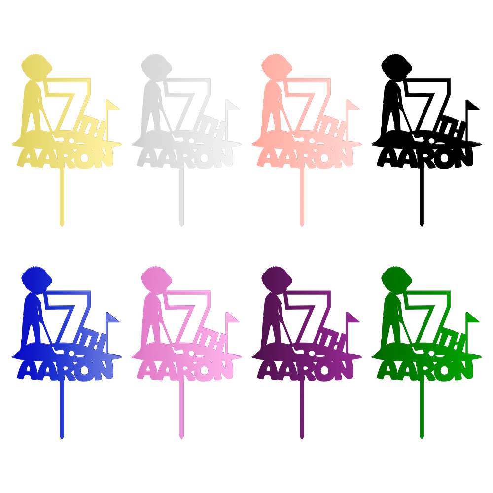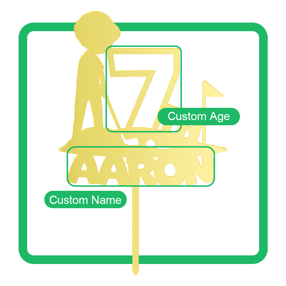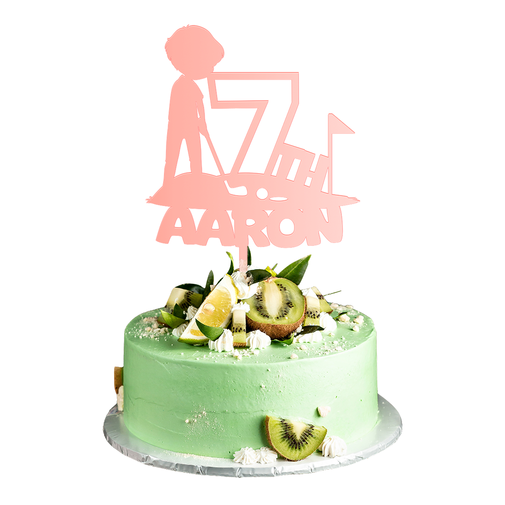 Personalized Birthday Cake Topper in Acrylic Golf Theme Custom Name and Age Design 2