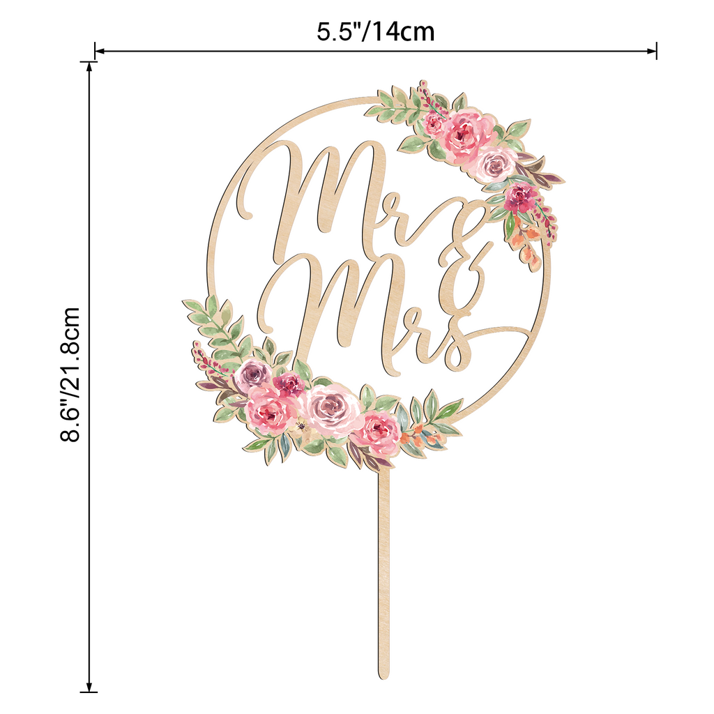 Celebrate your union with the rustic charm of our 'Mr & Mrs' wooden cake topper with Pink Floral Round Frame Design. Expertly crafted from high-quality wood, this topper adds a natural, heartfelt touch to your wedding cake. The elegant design, paired with the organic texture, makes it the perfect accent for any wedding theme, from vintage to bohemian.