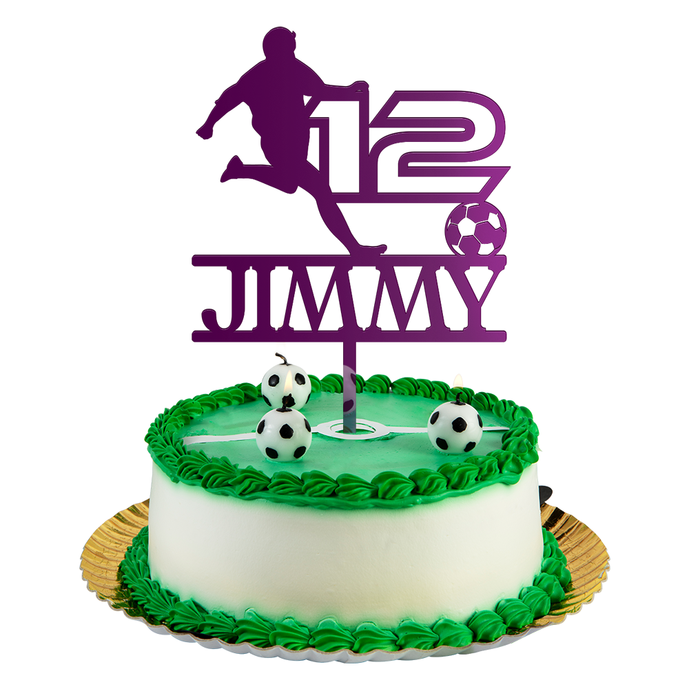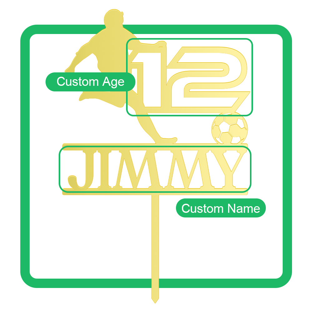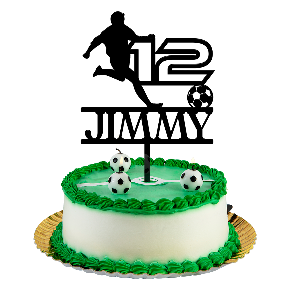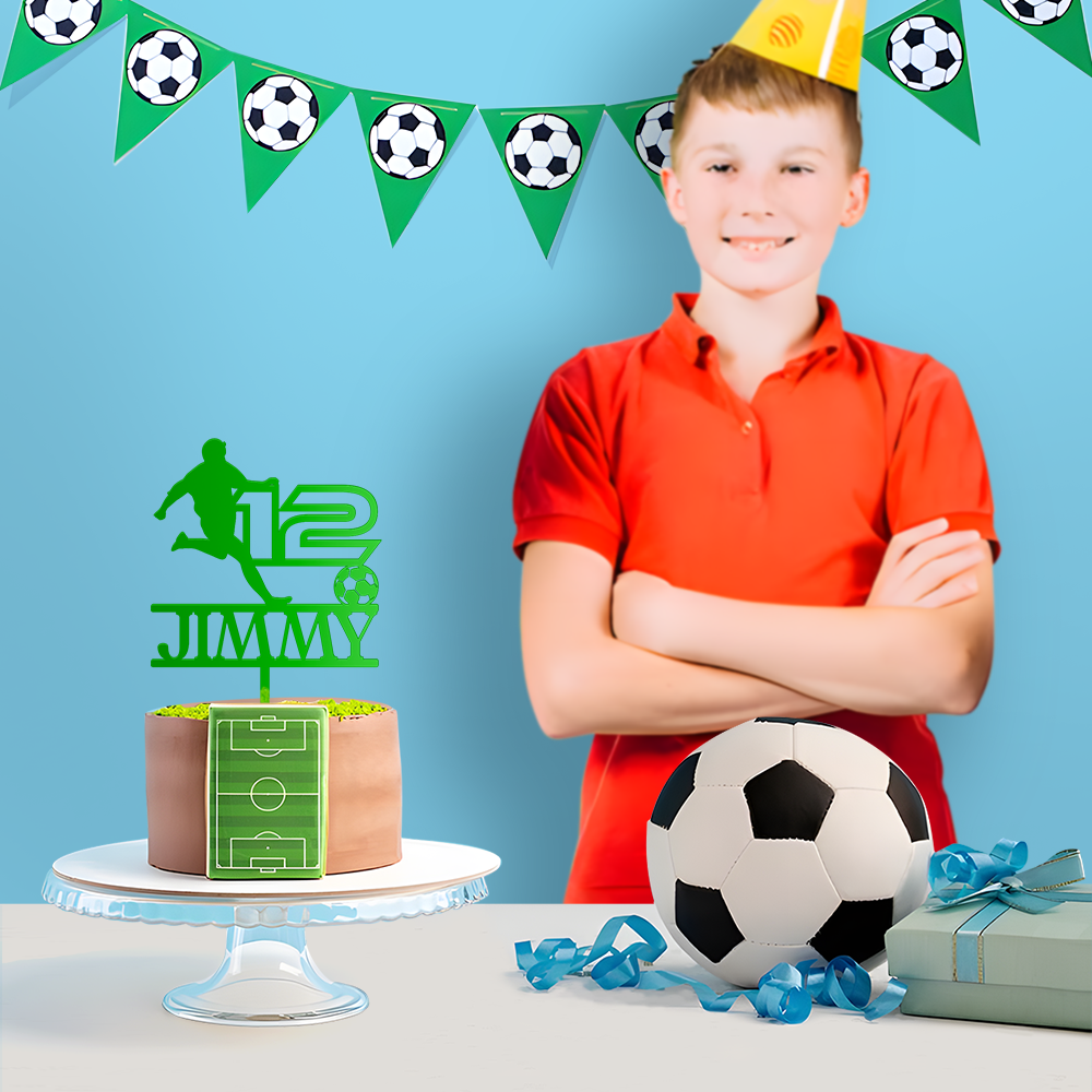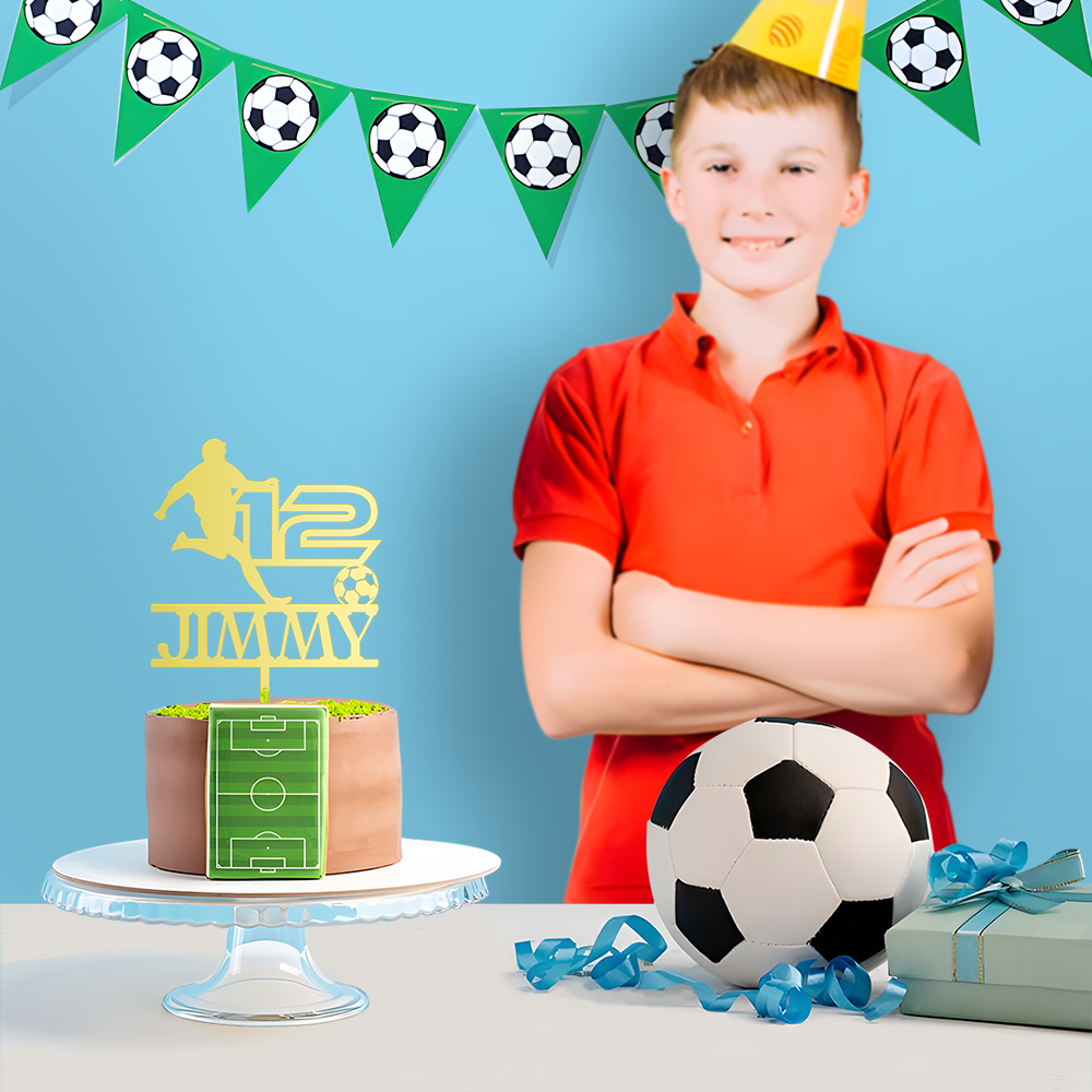 Personalized Birthday Cake Topper in Acrylic Soccer Theme Custom Name and Age Design 1