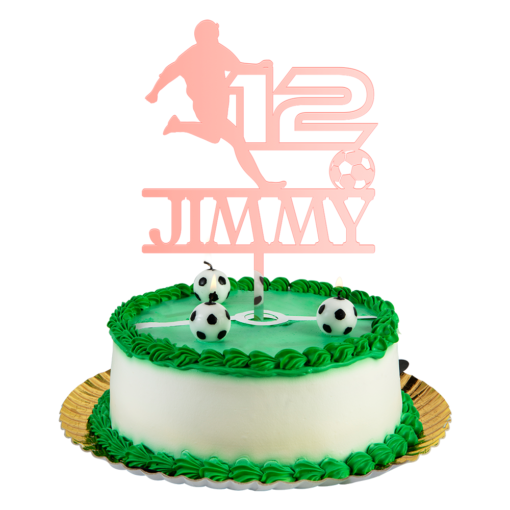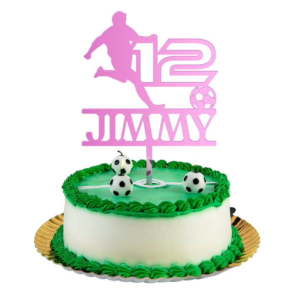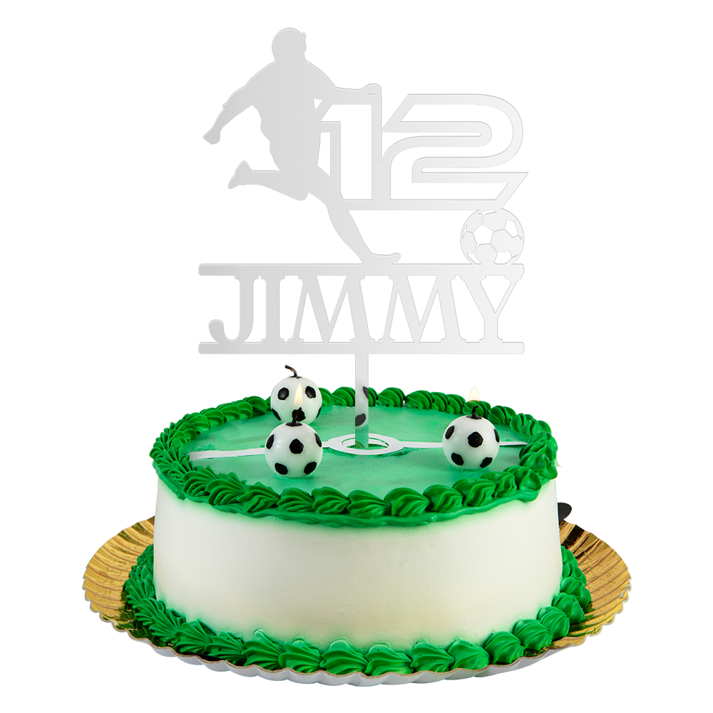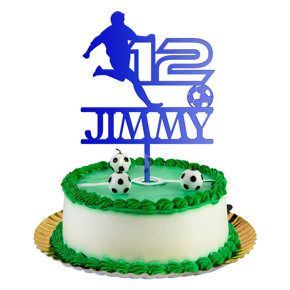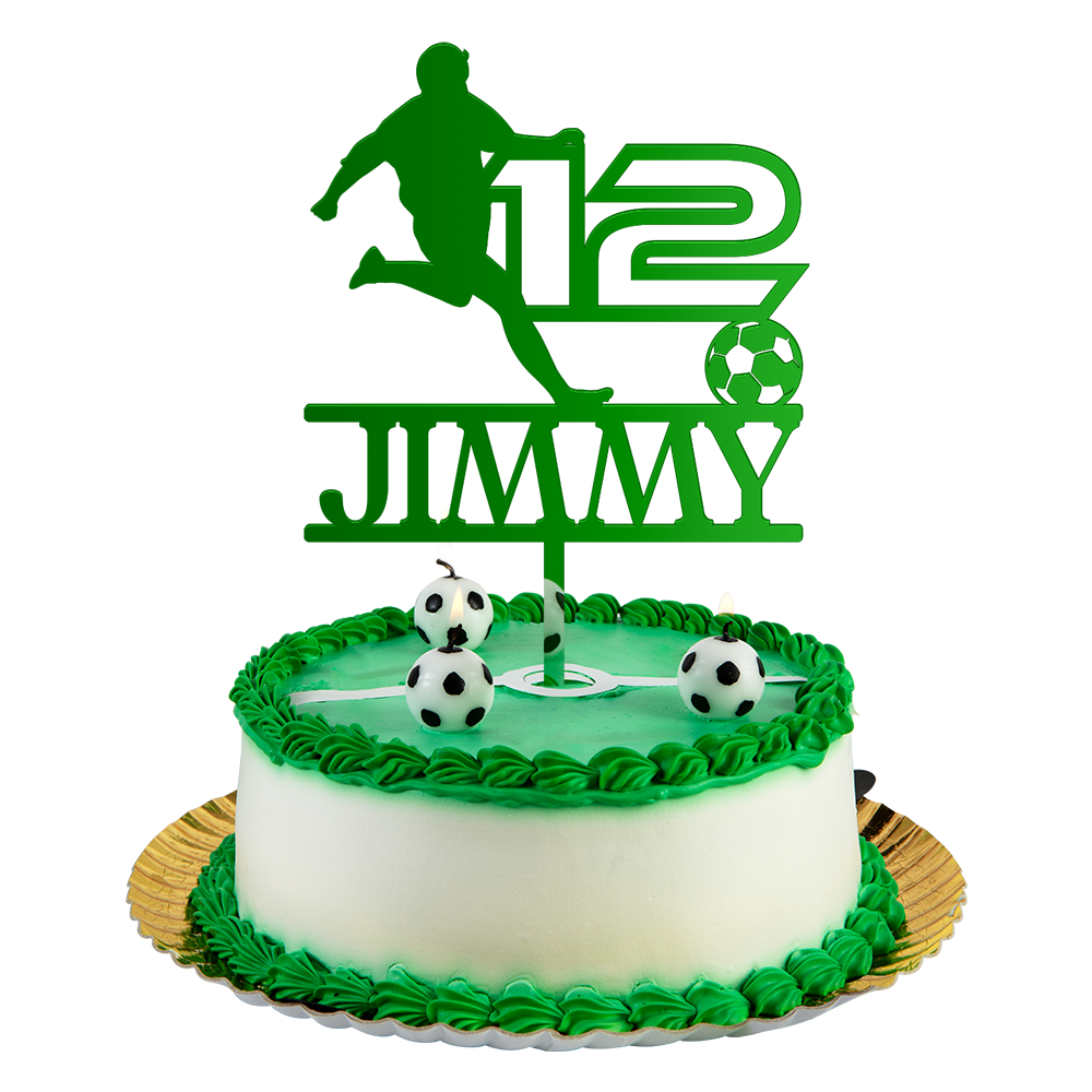 Personalized Birthday Cake Topper in Acrylic Soccer Theme Custom Name and Age Design 1