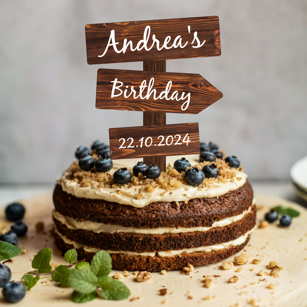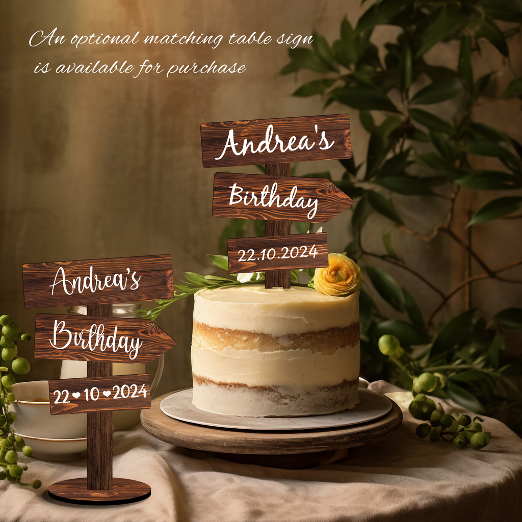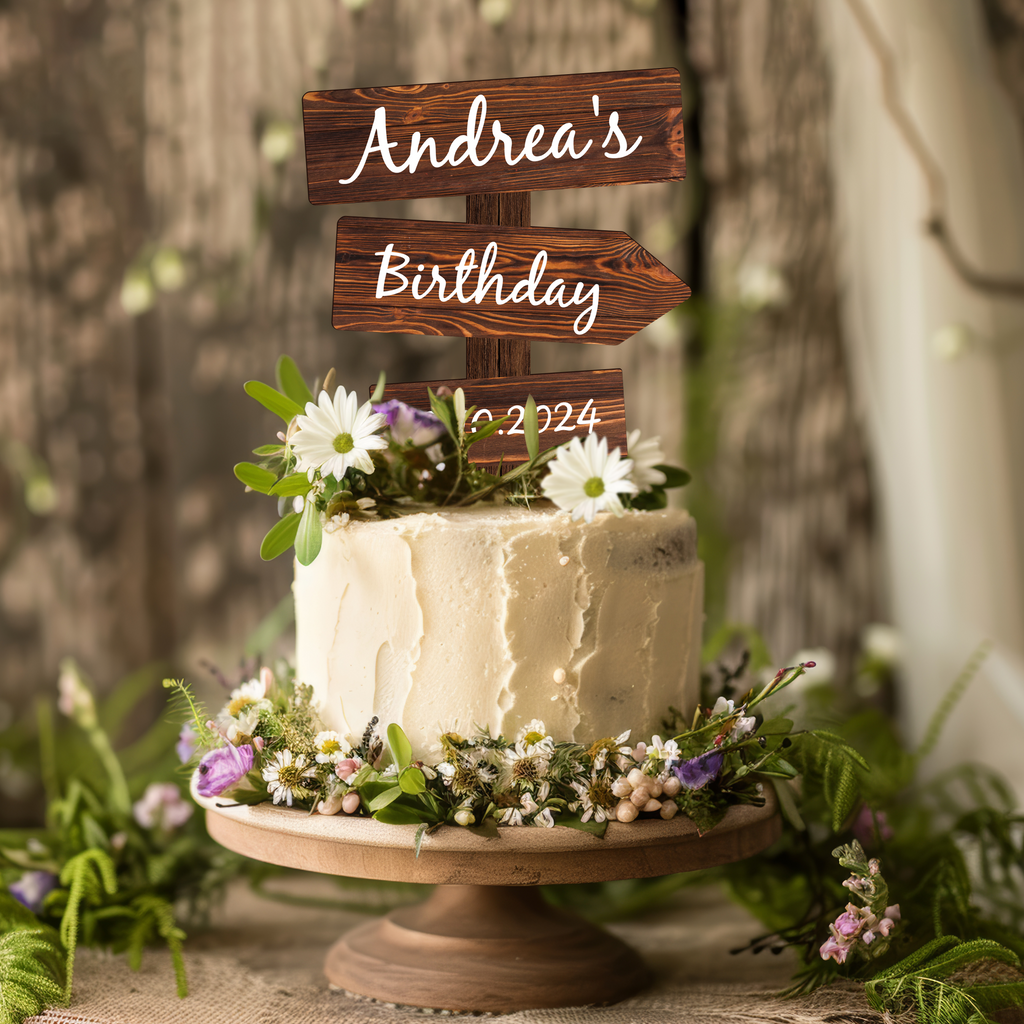 Celebrate your special day with our personalized wooden rustic cake topper. Crafted with care, this unique piece features your name & date, adding a touch of rustic style to your birthday. This exquisite topper transforms your cake into a cherished centerpiece, making your event truly unforgettable.
