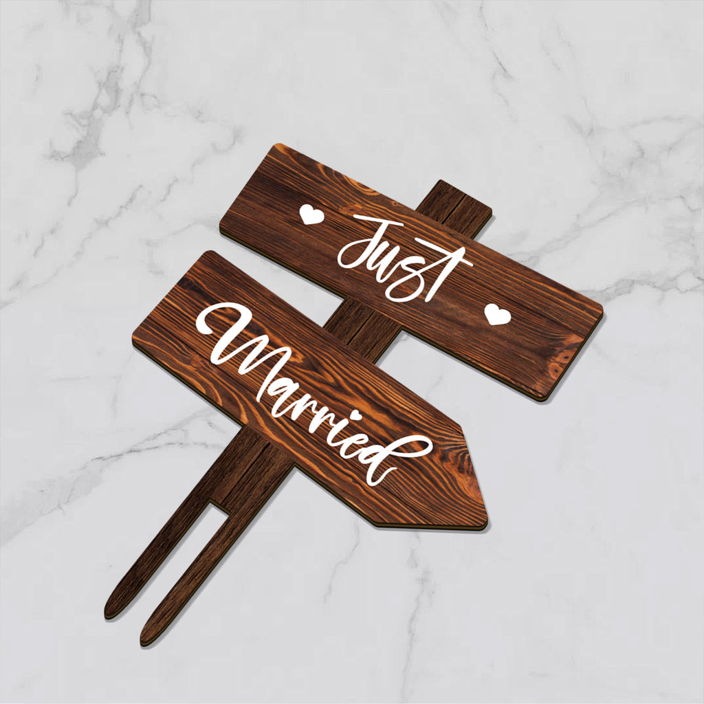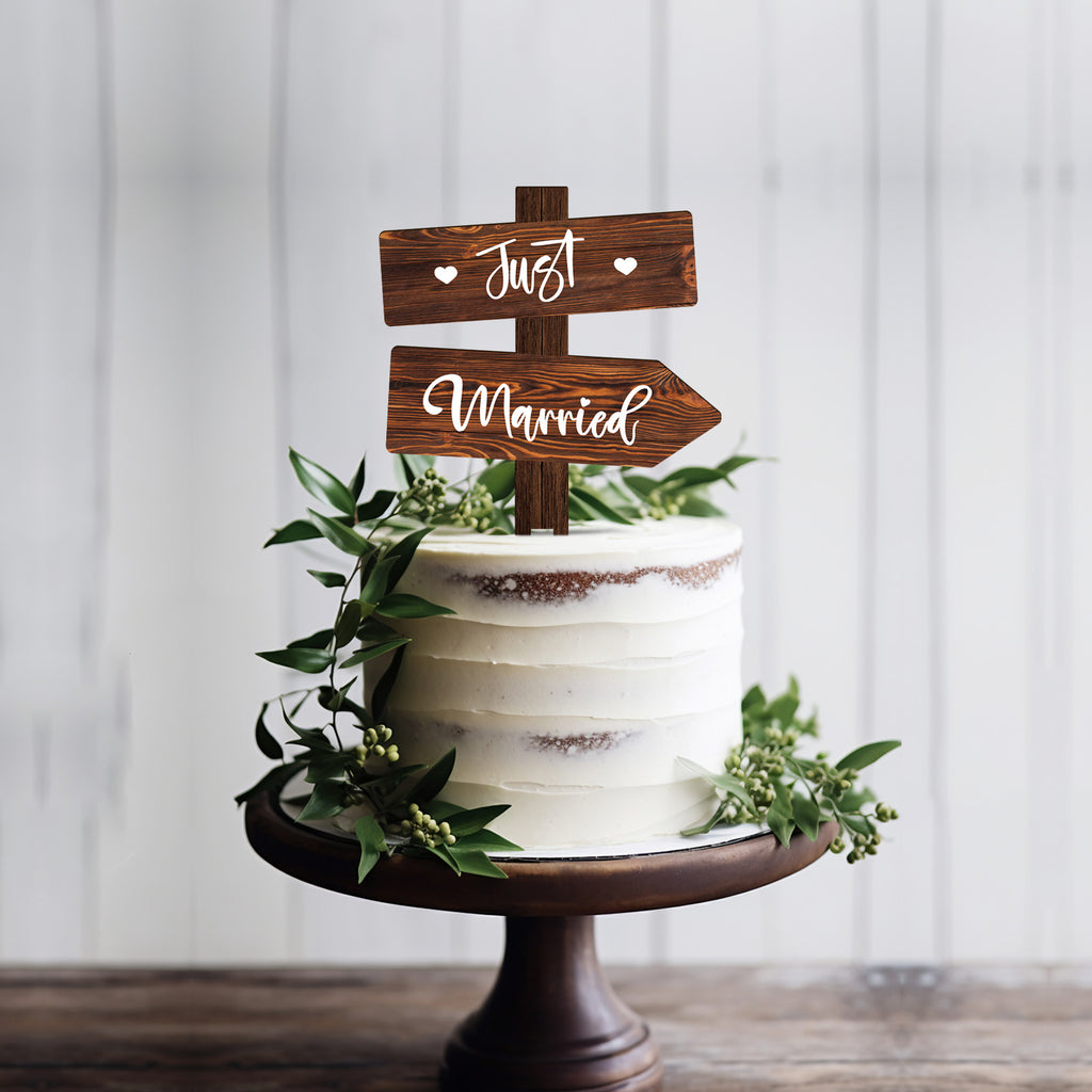 Rustic Just Married Wedding Cake Topper in Wood Wedding Cake Decoration