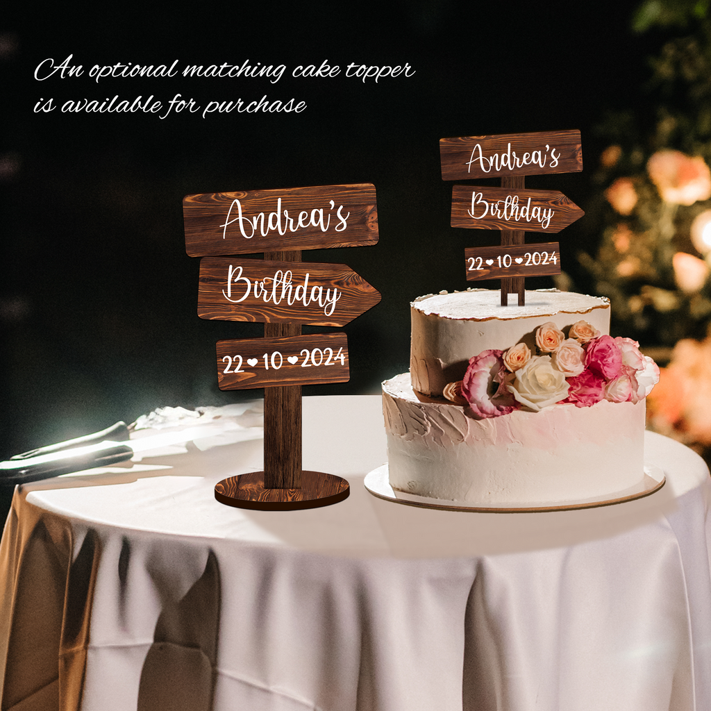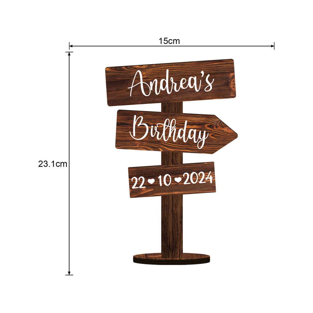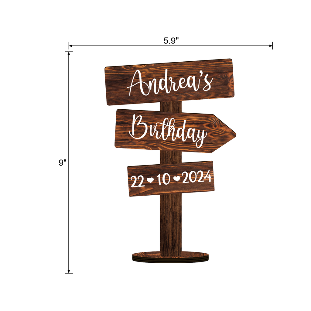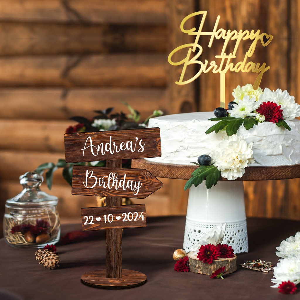 Rustic Birthday Table Sign in Wood Personalized Name & Date Happy Birthday Decor