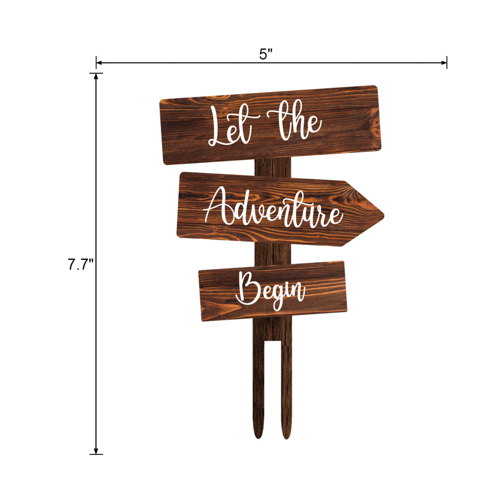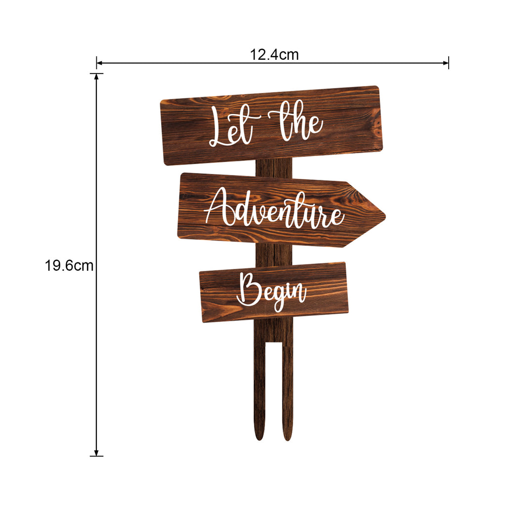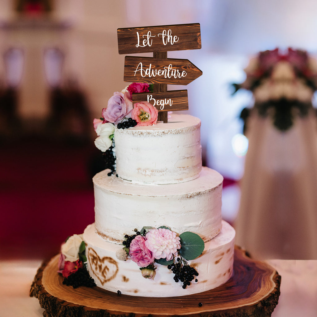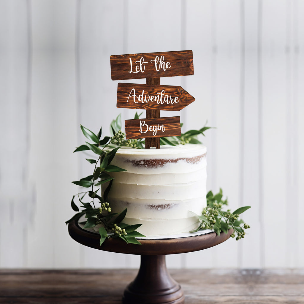Let the Adventure Begin Cake Topper in Wood Rustic Cake Decoration for Wedding & Baby Shower