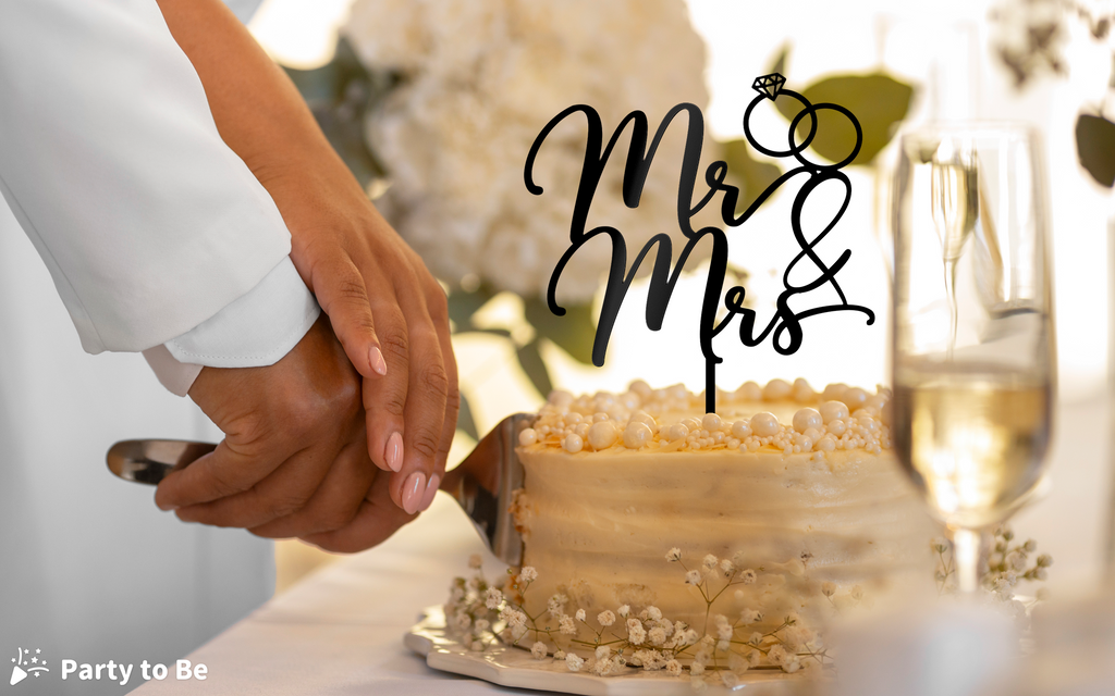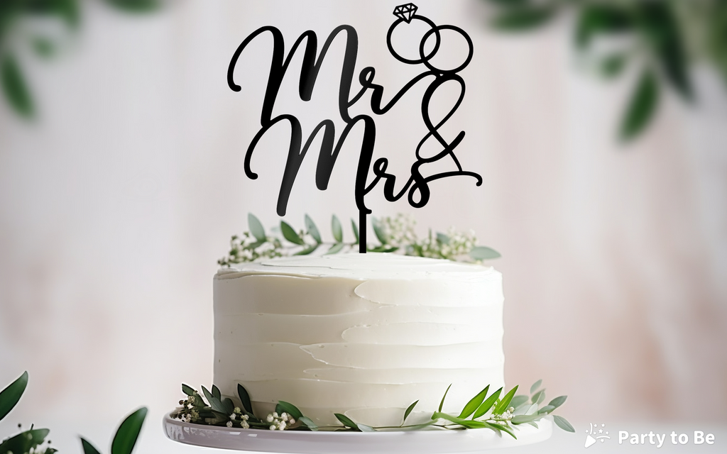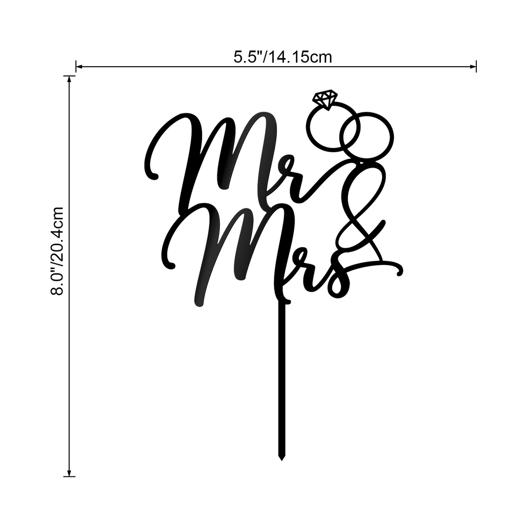 Mark your special moment with a modern twist using our 'Mr & Mrs' wedding cake topper with couple ring design. This topper's sleek design and glossy finish make it a stunning addition to any wedding cake. Crafted from durable acrylic, it adds a sophisticated touch, ensuring your special day is as stylish as it is memorable.