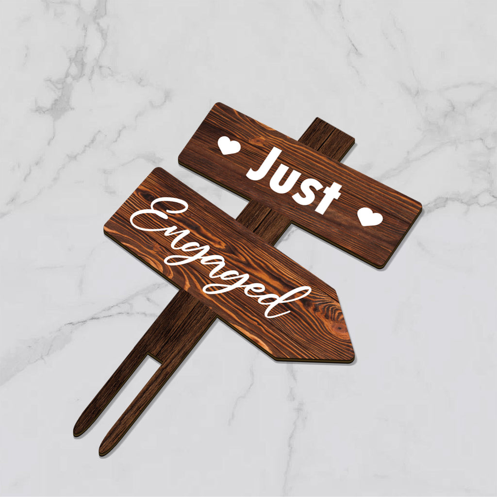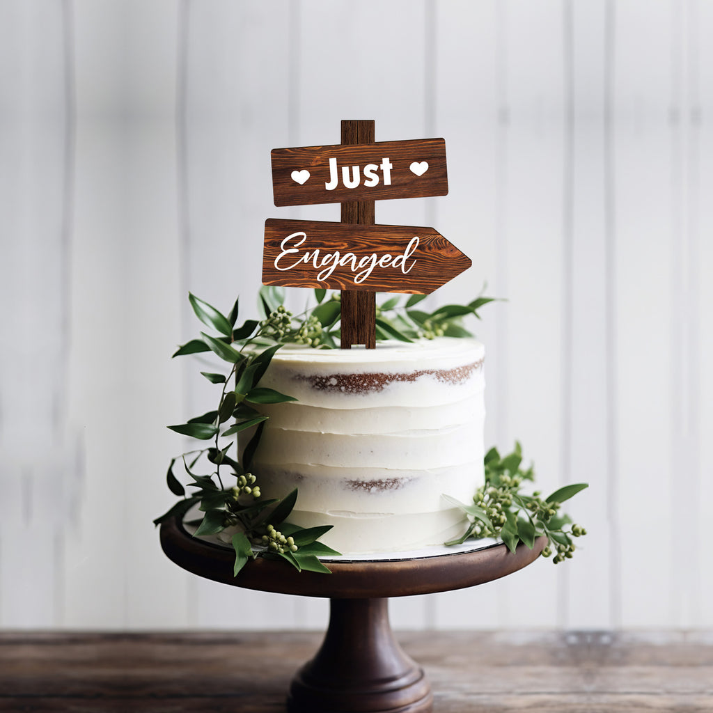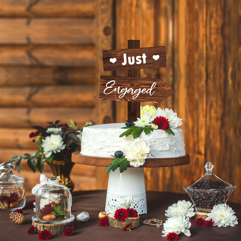 Rustic Just Engaged Cake Topper in Wood Engagement Cake Decoration